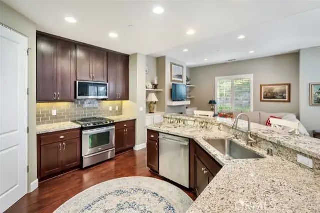 Townhome living at it’s best! This stunning Mediterranean style townhome is everything you need and more to live life to the fullest. Located in Trilogy Monarch Dunes, just around the corner from the clubhouse and all the superb amenities, this townhome really delivers – a gorgeous, HIGHLY SOUGHT-AFTER END UNIT located next to the Monarch Butterfly Preserve, 3 spacious master suites all with full bathrooms and walk-in closets (one on the ground floor), and top-notch, on-trend designer upgrades throughout. Enter through a gated patio – there’s plenty of room for a barbecue, seating, and garden pots – this will easily be your go-to spot to relax with a glass of locally-sourced wine and take in the serene wooded surroundings. Inside, you’re met with open-concept living with exquisite hand-scraped engineered wood flooring and plantation shutters. A welcoming living room awaits with a cozy fireplace to gather, surrounded by well-appointed built-ins. The dining room is right off the kitchen, perfect for hosting friends and family, and a sweeping bar-height granite island overlooks the kitchen for casual everyday dining. The well-thought-out culinary kitchen features sleek stainless appliances, rich walnut-tone Shaker-style cabinetry, granite countertops with subway tile backsplash and a roomy walk-in pantry. Adjacent is a convenient powder room with pedestal sink and a full-size laundry. The ground floor owner’s suite offers a spacious bedroom that’s light and airy with a walk-in closet. The luxurious en-suite bathroom offers a granite counter, plenty of storage, and a shower/tub combo. Upstairs you’ll discover the other two master bedroom suites, each with a full luxury bathroom and a walk-in closet. The larger one sports a beautifully tiled shower, dual sinks, granite countertop and a fully-outfitted walk-in closet. The remaining suite is identical to the ground floor one. In addition, there’s a floor-to-ceiling linen closet upstairs, a 2-car garage, surround sound, security system, plus all the fabulous amenities Trilogy has to offer – pool, gym, clubhouse, art studio, tennis/pickle ball courts, Adelina’s Bistro, and so much more. This spectacular, turnkey townhome offers you the carefree lifestyle you’re looking for, and when you wish to travel, just lock the front door and you’re ready for whatever adventure awaits.