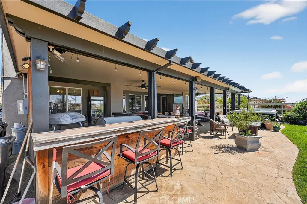 The chef’s kitchen is the heart of the home, complete with high-end finishes, ample workspace, and seamless flow into the main living areas—perfect for both everyday living and entertaining. Step outside to a beautifully designed patio featuring a built-in bar, creating the ultimate space for hosting gatherings or enjoying warm Norco evenings.
