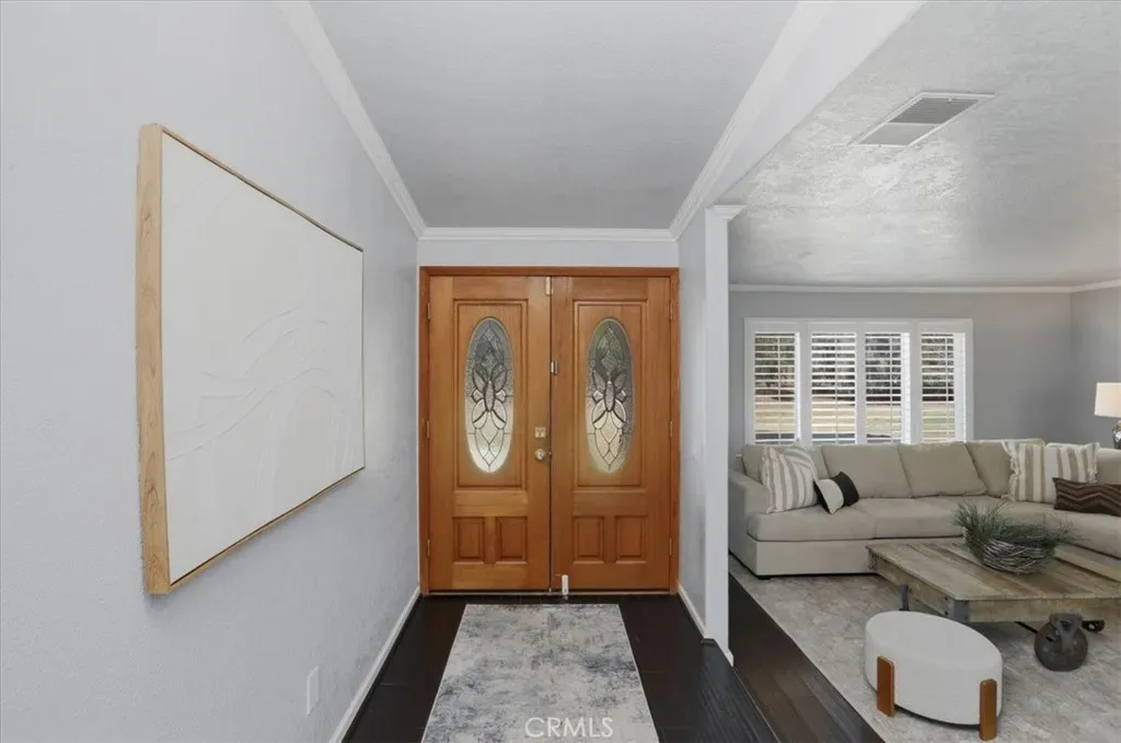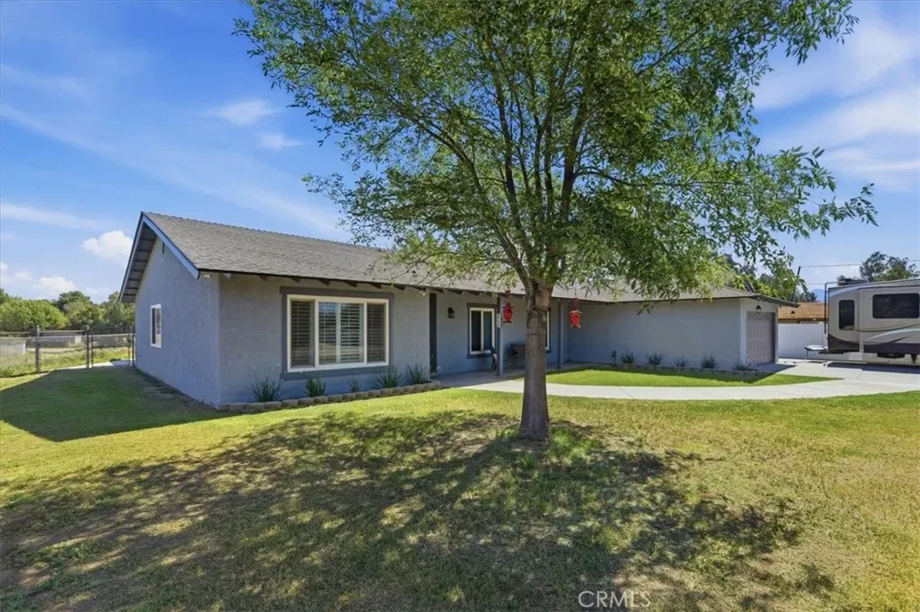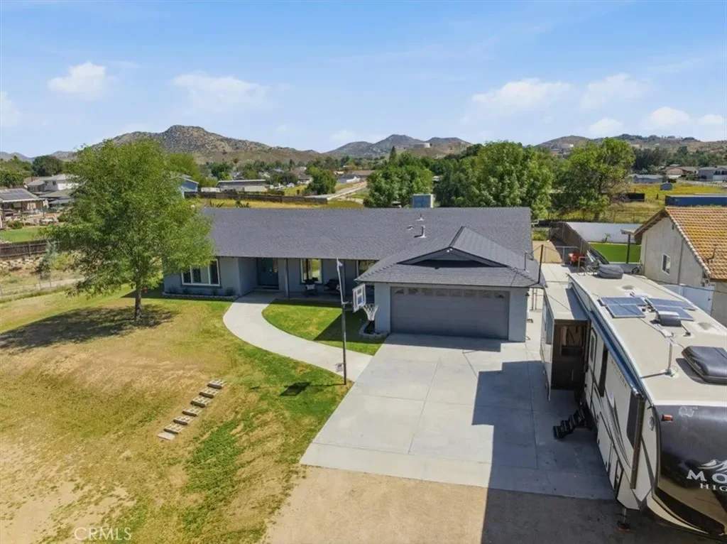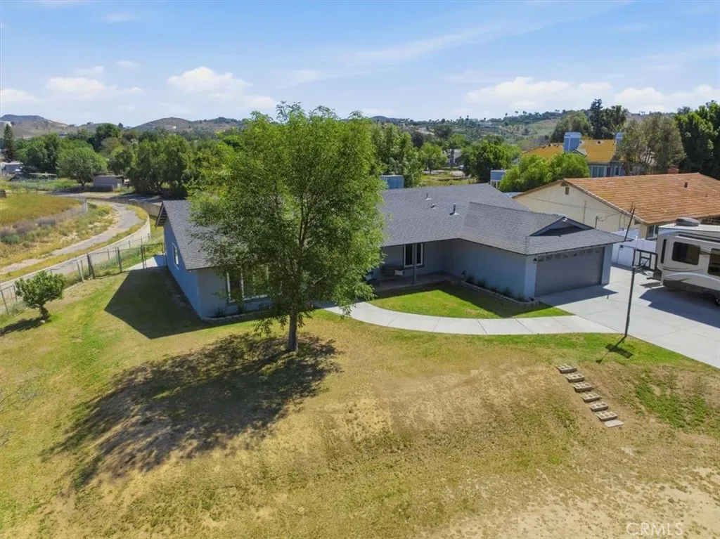 Here is your chance to own A spacious home in ‘HORSETOWN USA” in a Fantastic location on a Flag shape lot for plenty of privacy! Beautiful views of the hills and valley from you backyard perfect to drink your coffee and watch the sunrise. This beautiful home features a open and spacious floorplan with larger bedrooms. 4 bedrooms for a large family and extra room. Double door entry with leaded glass that leads you to your foyer. The formal dining room and living room areas are perfect for entertaining and space. Or you can turn it into a game room. This is a versatile home with all the space you need. The kitchen has been upgraded with stainless steel appliances, Corian counter tops and solid wood cabinets. The cabinets have multiple pull outs draws making accessing you kitchen supplies easier. Family room has a gorgeous rock fireplace that ads charm and comfort to the room and beamed vaulted ceilings make the room look even larger. Guest bathroom has ton of cabinets perfect for all your linen and storage. Primary bathroom has a walk in shower. Upgrades include copper plumbing, dual pane windows, newer interior paint and exterior paint garage door opener. The front of the home is a perfect place to bring your horses and make your dream equestrian facilities and arena which is separated from the house. There is plenty of room for all your toys or room to build a workshop as well. There is ample RV parking with wide access on the side of the house or you can park them on the lower lot. This home has so much potential of usages and plenty of space to make it your own. Located close to the school and shopping adn the 15/91 freeways. Seller will be installing all new Sewer system prior to close of escrow