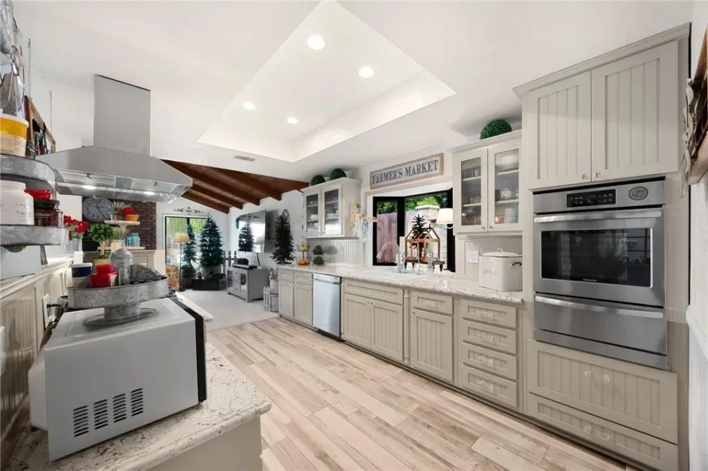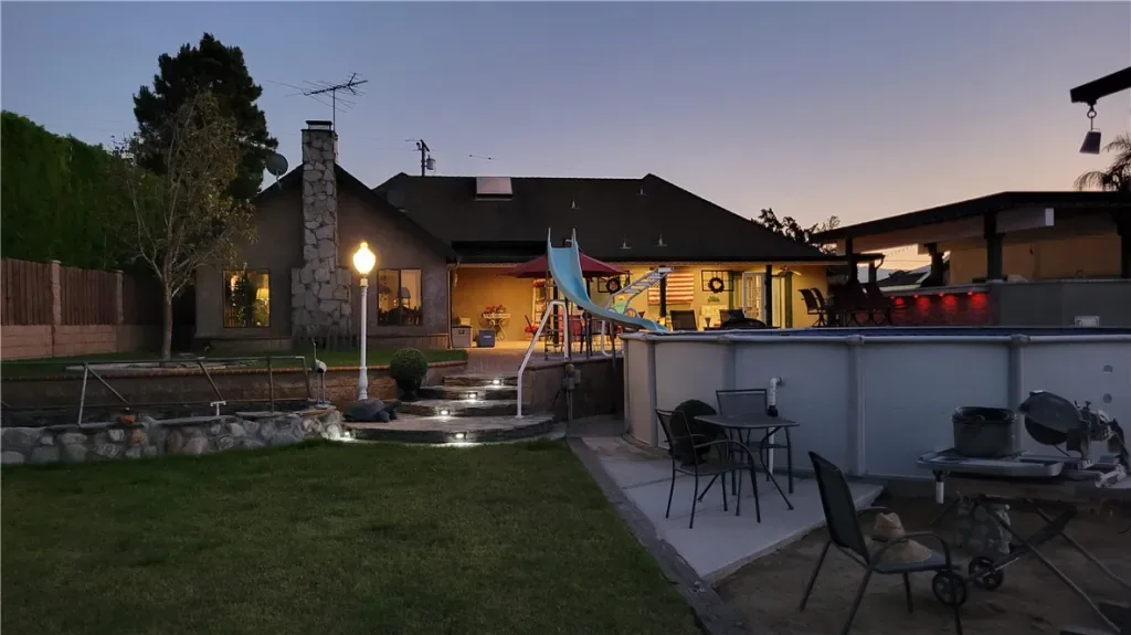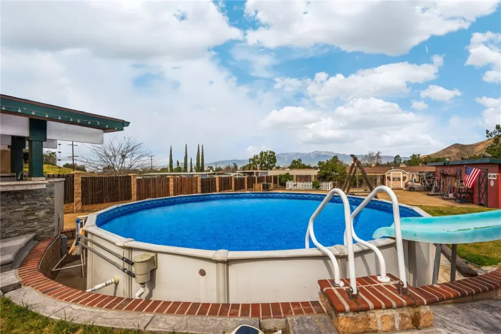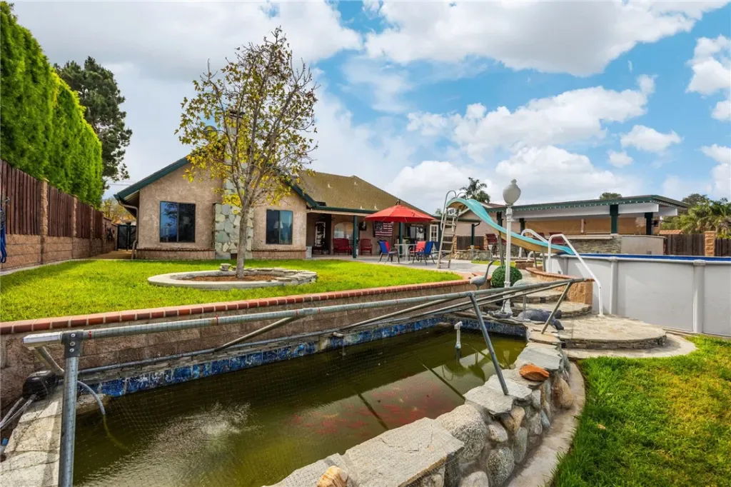 4 bedrooms if you convert office to 4th. 2-car garage w/large unfinished room above (29×26 total, 26×16 btw beams), plumbed for A/C & add’l BA-ideal future guest quarters/studio/office. High ceilings, abundant natural light, & hill views from both the living & family rooms. The cozy family room, showcases a striking fireplace and opens seamlessly to the outdoors: perfect for both everyday living & entertaining. The fully custom kitchen is a standout, offering quality cabinetry with self closing features, generous workspace, & a walk-in pantry, all open to the family room for effortless flow. Custom cabinetry throughout, newer interior paint, & newer carpet in the bedrooms & den, along with dual-pane windows throughout most of the house. The spa-inspired primary bathroom has been completely customized, dual sinks, upgraded plumbing, seamless glass shower, & a stunning jetted clawfoot soaking tub. Guest bathroom offers dual sinks & a tub/shower combo with newer tile extending to the walls & ceiling. With A/C & a Whole house fan. A remarkable backyard, every inch of the land is usable & flat, ideal for horses, stables, barns, or future expansion. The grounds are enhanced with custom stonework, planters, drainage, & color-changing accent lighting, creating a resort-like ambiance. Entertain year-round in the massive custom outdoor kitchen, overbuilt with reinforced footings, overhead beams, extensive counter space, built-in BBQ, refrigerators, & Storage. Included is a custom concrete fire pit, LED-lit covered patio with fans & TV. Enjoy an above-ground pool with dedicated equipment & self-cleaning system, a freshwater pond that supplies yard irrigation, multiple large barn-style storage sheds, garden area, custom swing set, & mature fruit trees including orange, lemon, grapefruit, peach, & avocado. Water has been plumbed from the front to the rear of the property. This is a rare opportunity to own a highly customized, turnkey property that delivers luxury, land, & lifestyle, perfectly suited for horse enthusiasts, entertainers, or anyone seeking space, privacy, & quality in one of Norco’s most sought-after settings. AND MORE See supplemental page & Videos