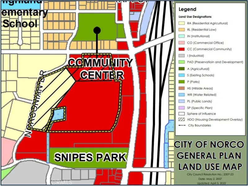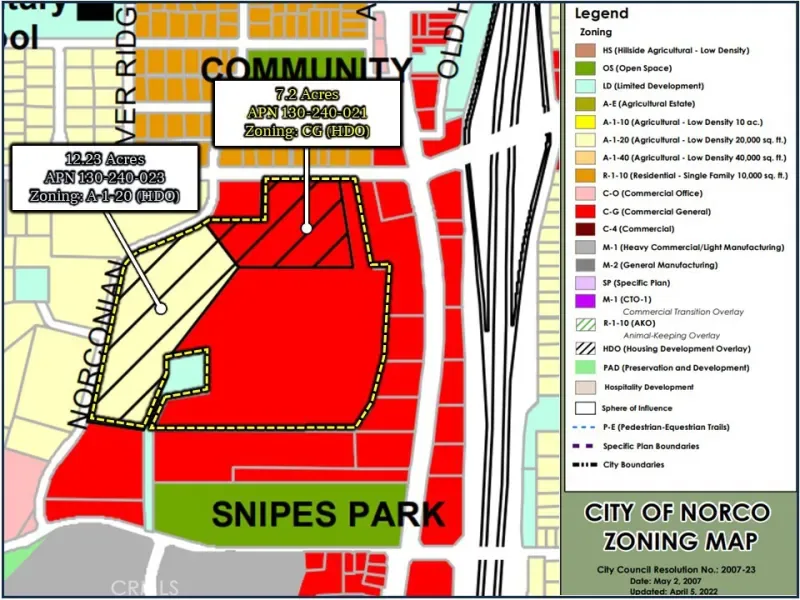 The subject property is a ±44.8 acre development site located on Norco Drive between Norconian Drive and Hamner Avenue in the city of Norco, CA. Located in central Norco, this site on the south side of Norco Drive just two blocks to the west of the I-15 freeway.