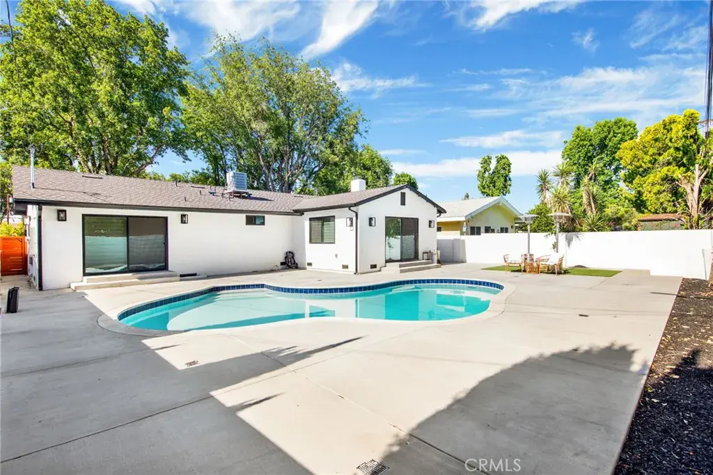 FULLY UPGRADED Home with PERMITS, brand New attached ADU approximately 450 Sq.ft with separate address-(16050 Bahama St). Major upgrades include a BRAND NEW-2025 Year Roof, Brand New Pool Plaster, Brand New Custom Made Blinds for All windows and All sliding doors (for both units). The main residence (16052 Bahama ST) offers three bedrooms, two full bathrooms, and a large beautiful living room, very large kitchen. Large and convenient living room offers direct access to a beautiful backyard with sparkling pool. Inside you’ll find a new flooring, smooth finishes, recessed lighting, new doors, a reimagined fireplace in the dining area, modern bathrooms. Very large kitchen offers countless custom made cabinets with sliding drawers all over. The private backyard showcases a beautifully Resurfaced Sparkling Pool, new Concrete and Drainage, Modern Irrigation. ADU is equally impressive, featuring its own tankless water heater, custom made blinds, convenient kitchen with living area, separate bedroom with closet. Don’t miss out on this rare and is Perfect opportunity for multi-generational living or additional rental income. Brand new ADU ready for immediate move-in with potential monthly income. FULLY FURNISHED ADU comes with Bedroom set, Living room and kitchen Furniture, TV, Refrigerator, Washer-Dryer, ALL INCLUDED in the sell. Main house Refrigerator and Washer-Drier NOT included in the sell.True turn-key property with income from day one.