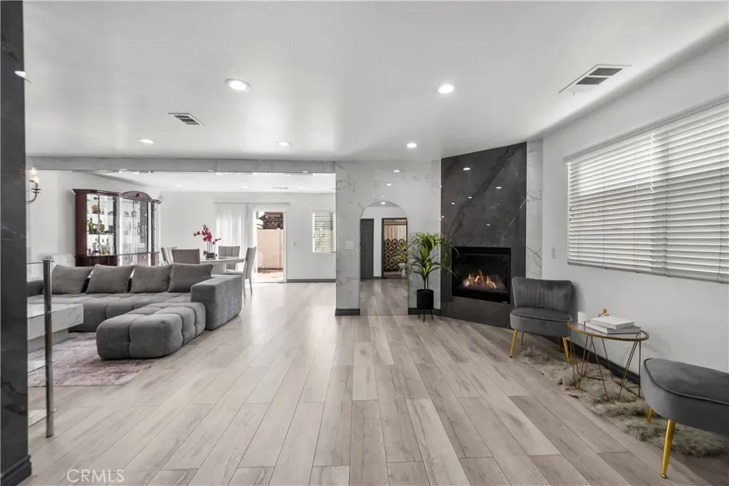 Welcome to this beautifully upgraded freestanding condominium located in a desirable gated community in North Hills. Offering the feel of a single family home, this spacious 4 bedroom, 3 full bath residence features approximately 1,837 square feet of living space and has been thoughtfully updated throughout. Step inside to a light filled open concept floor plan with brand new flooring, recessed lighting, and a seamless flow between the living, dining, and kitchen areas ideal for both everyday living and entertaining. The inviting living room showcases a stunning floor to ceiling marble accent wall with a sleek marbel fireplace and mounted TV, complemented by an elegant chandelier that adds a touch of luxury living. The kitchen features granite countertops, stainless steel appliances, and a striking marble tile backsplash that extends from the counters all the way to the ceiling, creating a modern and upscale design. Upstairs, you’ll find four large sized bedrooms including a spacious primary suite with a walk in closet and dual vanity bathroom with marbel flooring. Additional features include a two car garage with EV charger, indoor laundry, modern finishes throughout, and a whole house water purification system. Conveniently located near schools, shopping, dining, and with easy access to the 5, 405, and 118 freeways, this move in ready home offers comfort, style, and convenience.
