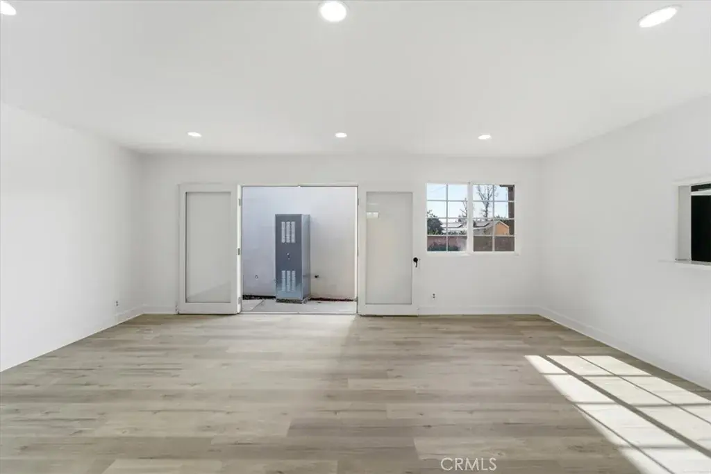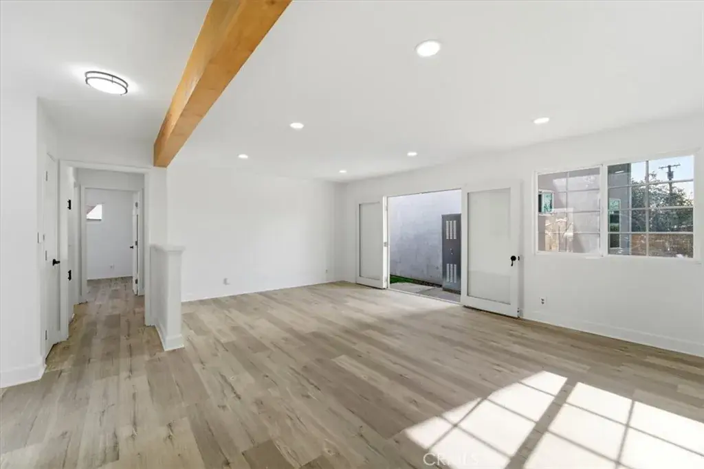 The main house is a 3-bedroom, 2-bath single-family residence that has been thoughtfully upgraded throughout. Highlights include a fully renovated kitchen with brand-new cabinetry and countertops, new flooring throughout, fresh interior paint, recessed lighting, and updated bathrooms with new vanities, mirrors, lighting, and designer shower tile. The open-concept living room features French double doors that open directly to the backyard, creating a gorgeous indoor-outdoor flow. The main house also includes a 2-car enclosed garage with two storage closets, offering both convenience and functionality.