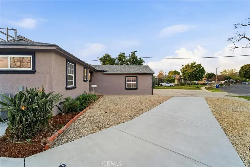 The outdoor space features a private courtyard-style backyard with lush landscaping and green grass. The long driveway provides even more parking for both residences. The property is ideally located near shopping, dining, and everyday conveniences in the heart of the Valley.
