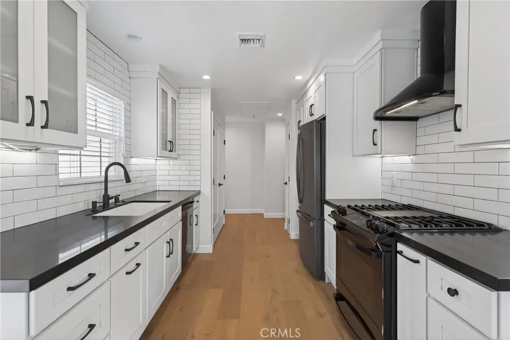 The 2021 whole-home remodel transformed this property from top to bottom. The stunning kitchen features a full gut renovation with a breakfast bar, all-new appliances, and designer finishes. The main bathroom was reimagined with a tiled walk-in glass shower, standalone soaking tub, large vanity, and bidet outlet. A stylish powder room was added for guests, while a dramatic tiled feature wall with fireplace insert anchors the living space. Engineered hardwood floors flow throughout, complemented by LED lighting, ceiling fans, a dining chandelier, and California blinds on every window.