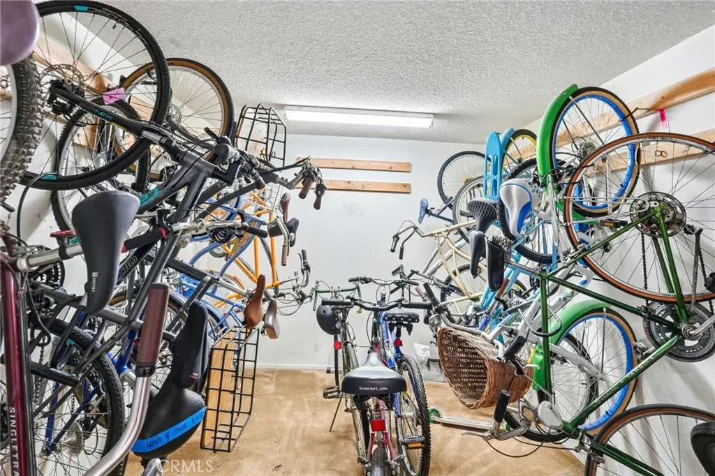 The gated community offers resort-style amenities including a pool and spa, security entrance, recreation room, laundry room, subterranean covered parking, private storage areas, a separate bike room, and two side-by-side assigned parking spaces. An electric vehicle charging hookup is already installed next to the parking space, and ample street parking is available for guests.