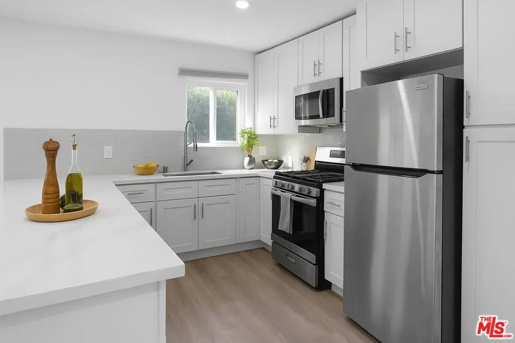 Step into this adorable, remodeled two-bedroom, one-bath unit in the heart of North Hollywood! The plank flooring, updated kitchen and bathroom exude modern charm, while the high-quality AC unit and recessed lighting create an ambiance of comfort and luxury. This charming unit offers the perfect balance between indulgence and coziness. Nestled in a vibrant neighborhood, this unit is surrounded by an array of conveniences. Indulge in many nearby restaurants, stores, and amenities, all just moments away from your doorstep. The famous NOHO Arts District is a mere 5-minute drive away, offering a dynamic cultural scene and endless entertainment options. ONE small pet allowed. Photos are of similar unit. Can show now and available to move in on April 22. Some photos may not be of this actual unit (but the finishes are accurate) and some photos are virtually staged.