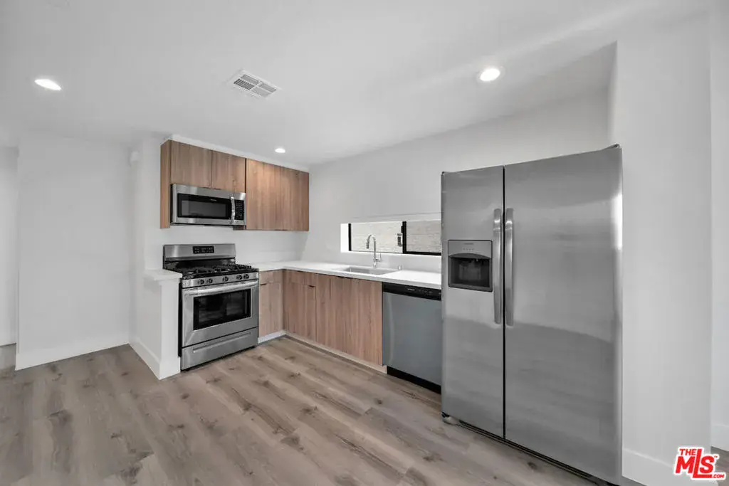 Available for lease in North Hollywood, this 2021 townhome is a fresh take on modern living with generous layout and designer finishes. Natural light is abundant in the spacious great room; the modern kitchen is finished with stainless appliances, light oak cabinetry, white quartz countertops, and a stylish backsplash. Four spacious bedrooms and four baths include a primary with floating vanity, quartz countertops, matte black finishes, and frameless glass shower. Hard surface floors flow throughout. Amenities include central HVAC, in-unit laundry, and assigned parking. Enjoy easy access to all the best North Hollywood has to offer, including theaters, cafes, and boutiques in the vibrant Arts District.