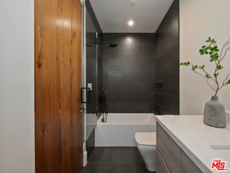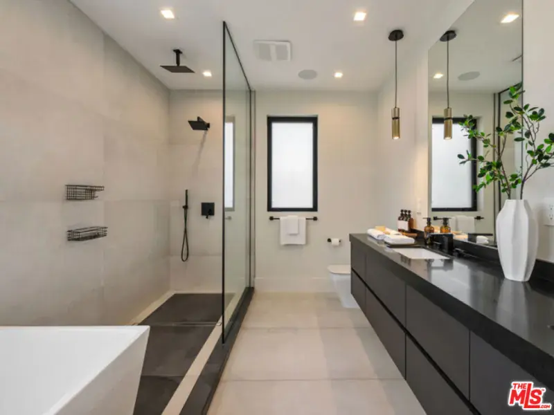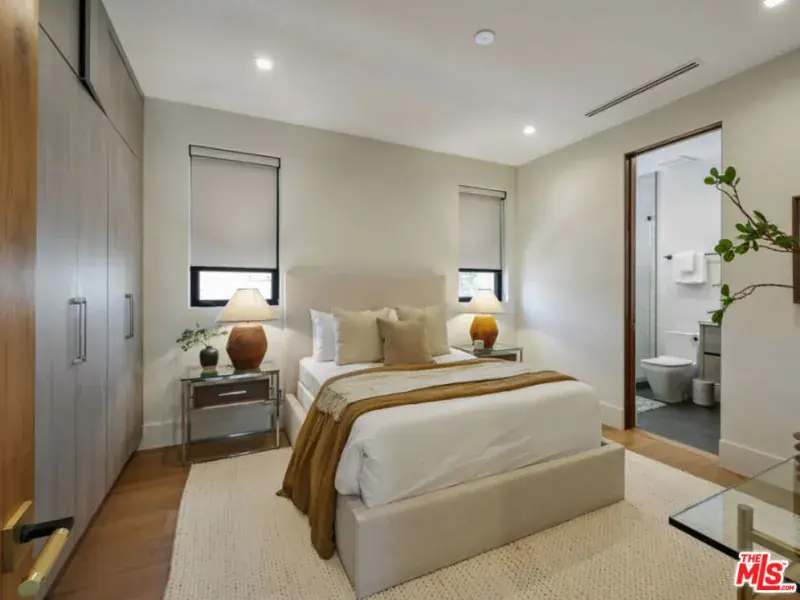 In the heart of Studio City, this contemporary residence built in 2019 offers a seamless blend of modern design and livability in the highly desirable Tujunga Village neighborhood. The home features five bedrooms and five bathrooms across a thoughtfully designed two-story floor plan, complemented by a detached studio and a heated pool and spa. The main level is highlighted by an airy open living and dining space, and a sophisticated chef’s kitchen with custom cabinetry, premium appliances, and an oversized center island. A first-floor bedroom provides ideal flexibility and privacy, complete with a walk-in closet and en suite bathroom. Upstairs, the primary suite serves as a private retreat with a dual-sink vanity, designer finishes, a spacious walk-in shower, and a balcony overlooking the backyard. Three additional well-sized bedrooms, each with an attached bathroom, along with a generous laundry room, complete the upper level. Designed for both entertaining and relaxation, the backyard features a heated pool and spa. The detached bonus space with air conditioning, ideal for a home office or creative studio. Just moments from Tujunga Village and Woodbridge Park.
