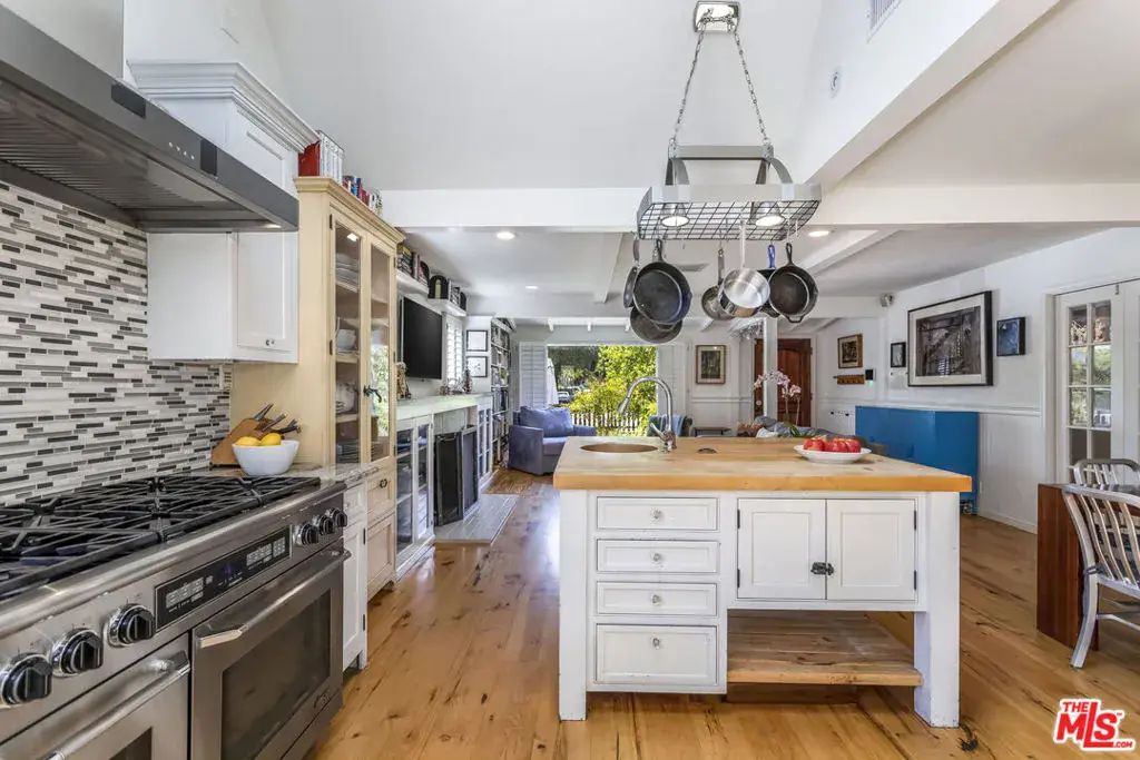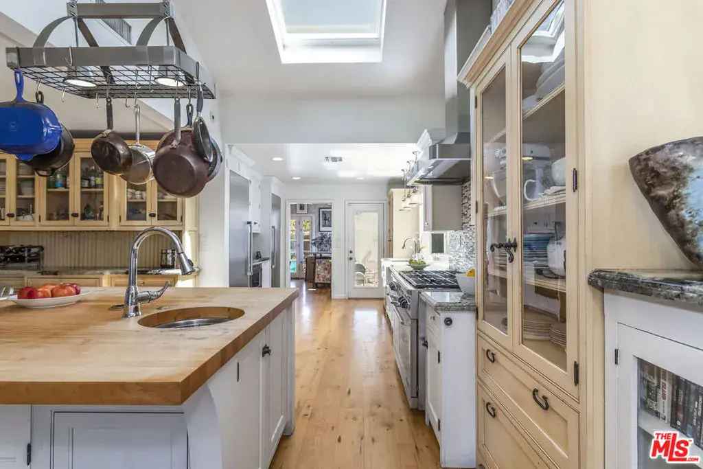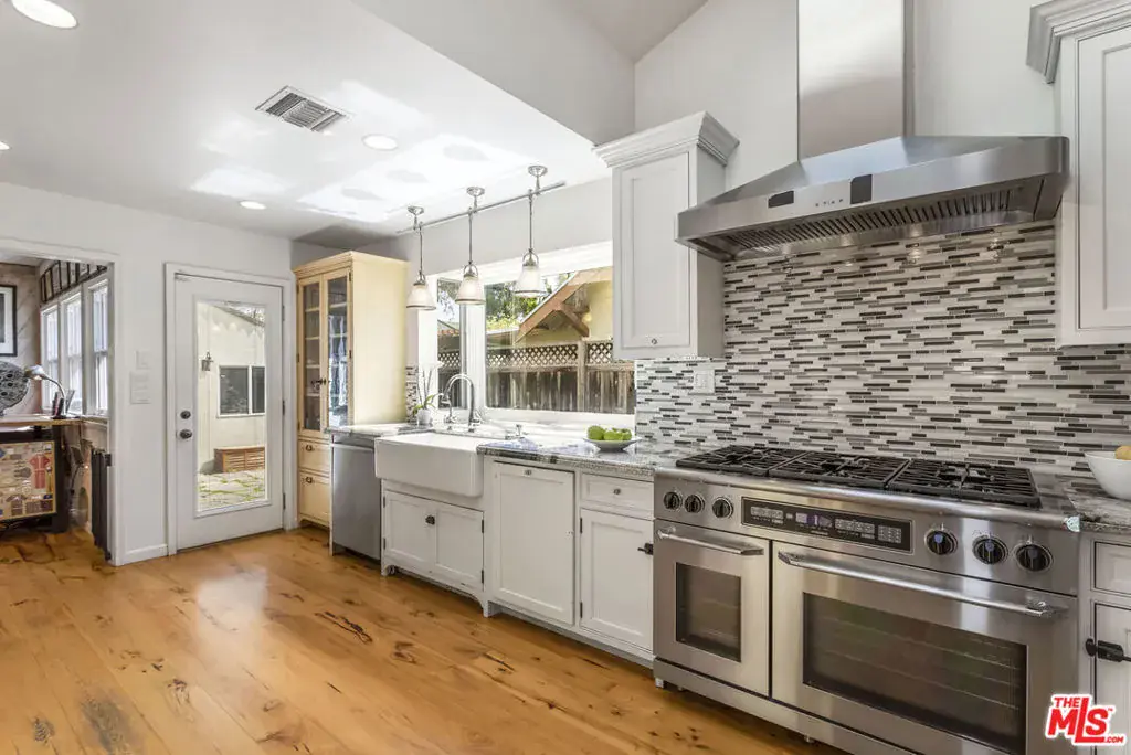 Beautifully renovated classic traditional in the award-winning Colfax Charter School District. Soaring sky lit ceilings add grand volume with an open concept floor plan that flows with ease. Wide plank Hickory hardwood floors. Baths feature sleek tile, fine fixtures, clawfoot & spa tubs. The gorgeous kitchen is an open culinary dream for the home chef. Appointed with Dacor and Thermador appliances, granite counters, farmhouse sink, custom butcher block center island with prep sink, custom Crown Point cabinetry with fridge and freezer towers. French doors give way to a backyard oasis with mature fruit trees & swimmers pool framed by a stone patio & terrace. An ideal venue for poolside lounging & BBQs by day, cool al fresco dining & entertaining under the stars by night. Amenities include updated plumbing & electrical systems & a detached sky lit studio with en-suite bath & kitchen with Wolf range. Located close to major studios, Valley Village Park, the Amelia Earhart Library & the NoHo Arts District. This residence of timeless appeal offers lasting enjoyment for the fortunate new owners.