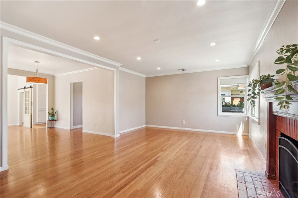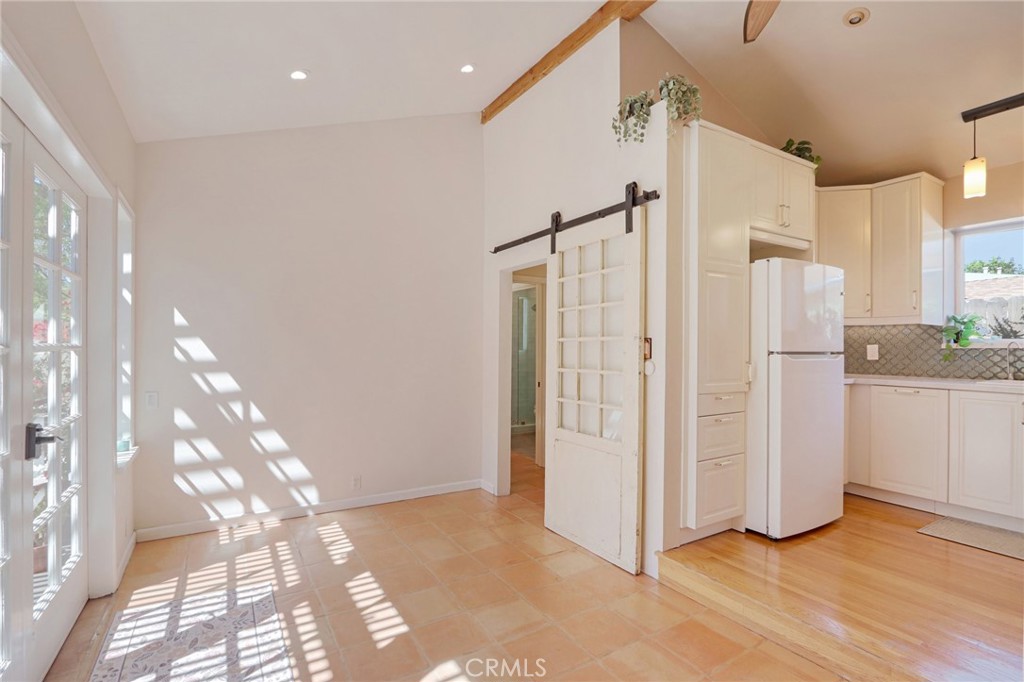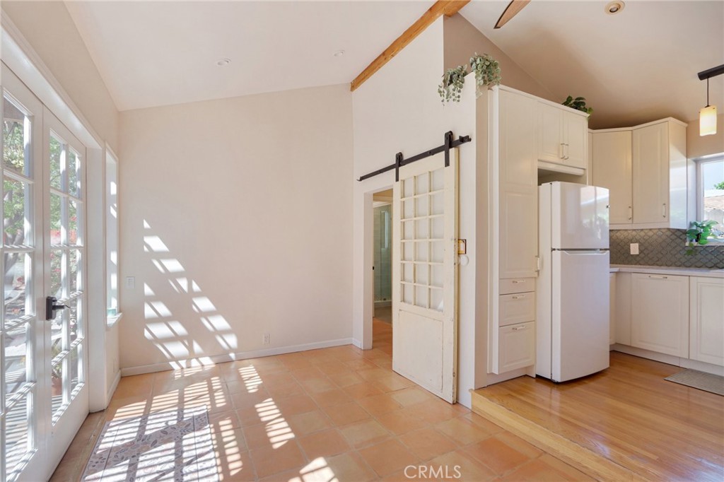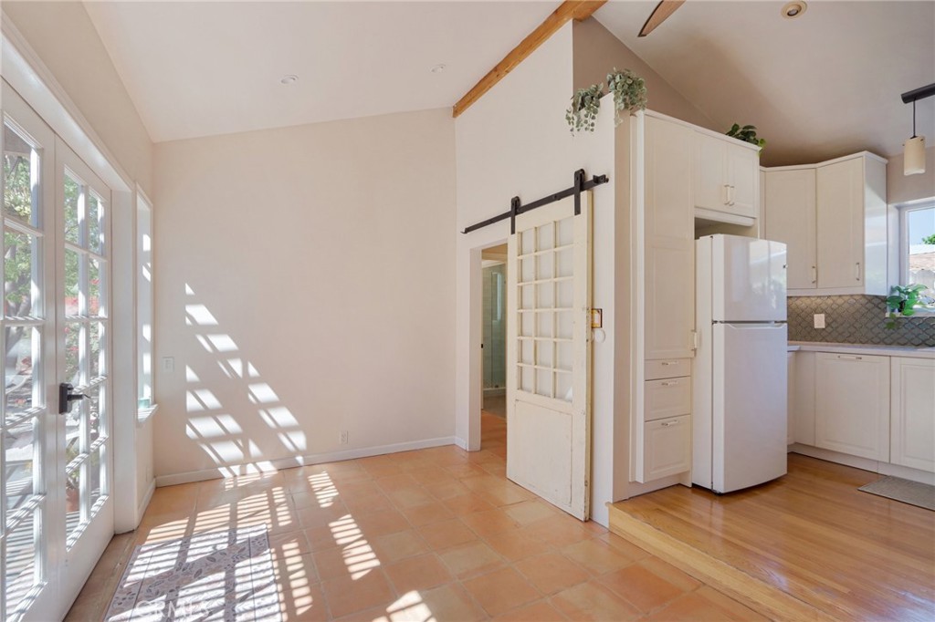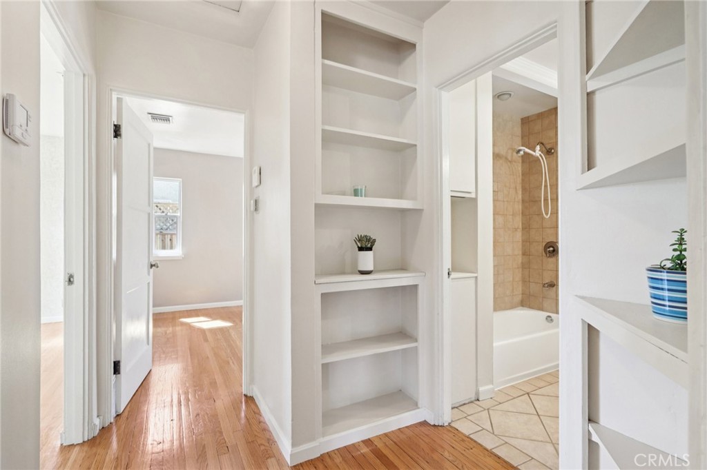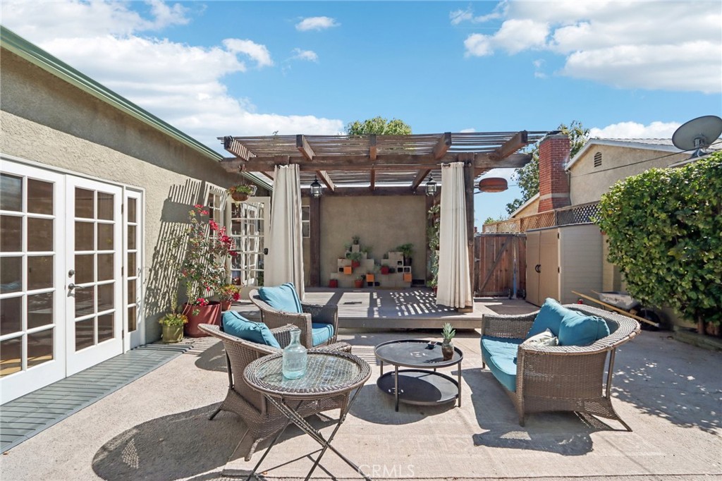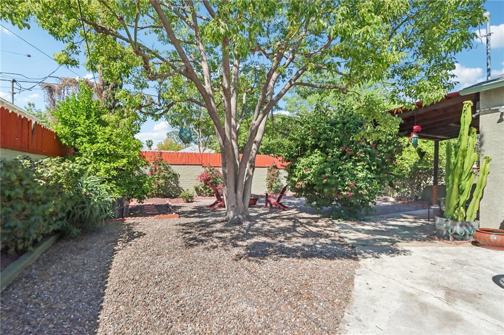 Welcome to this charming, well-maintained home on a cozy block with easy access to Magnolia Park, Toluca Lake and the Noho Arts District. Light and bright, with wood floors and Spanish-style tile floors, this home has a generously sized living room with views through the dining space into a sunroom. French doors lead to the raised patio/pergola which serves as outdoor dining & living space. Kitchen and pantry are remodeled with new cabinets, countertops and beautiful arabesque tile backsplash. Hallway with built-in bookshelves leads to two bedrooms and a full bathroom. Off the sunroom, walk through the laundry room with stacked washer & dryer to the expansive primary bedroom with high ceiling, ensuite bathroom, and separate heating/cooling system. Two large closets – one walk-in – provide plentiful storage. French doors lead to the backyard hideaway. Shaded by a mature tree, the private, fully fenced back yard is low-maintenance and low-water-use. A second patio behind the house is fully covered and wired for your outdoor television or stereo system. Walk to the popular Chandler bike & walking path and local favorites Iliad Bookshop, Cahuenga General Store, and Lawless Brewery.