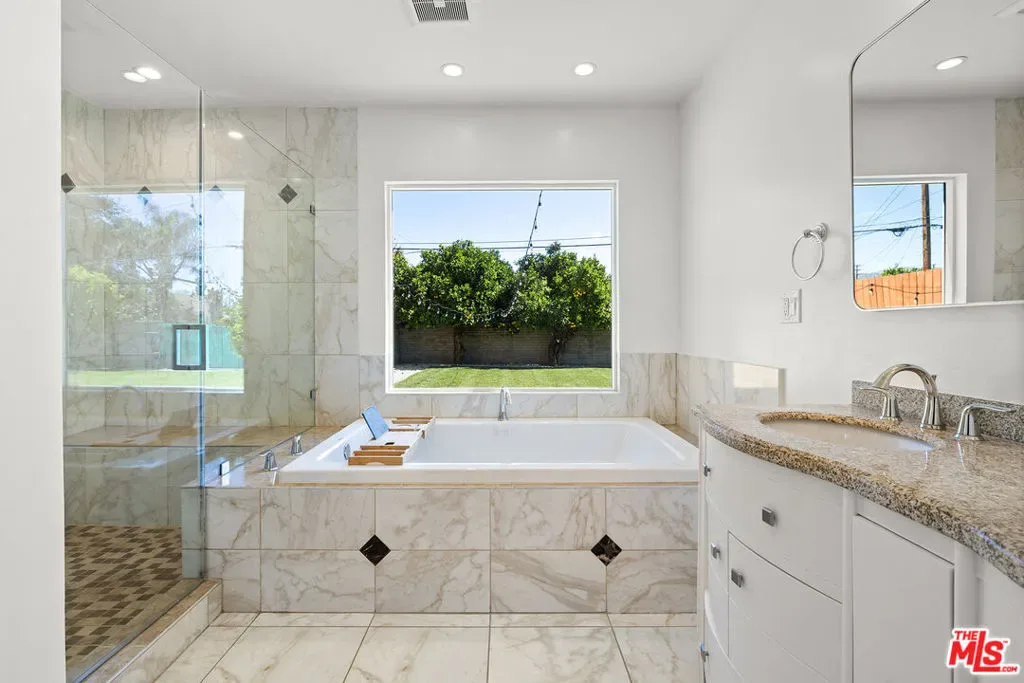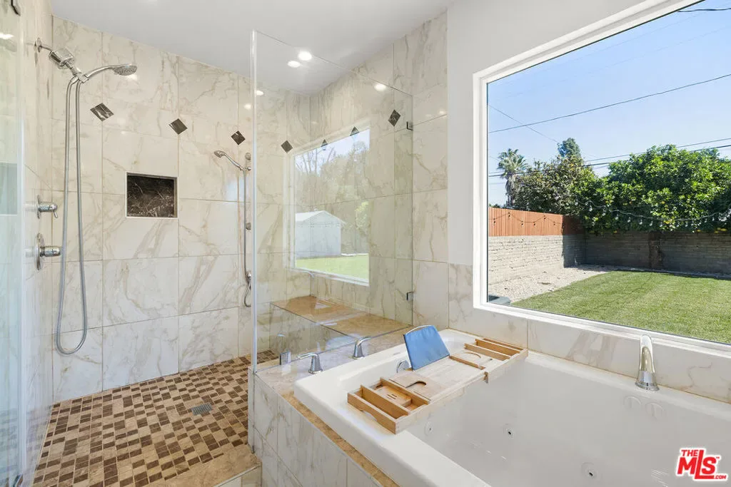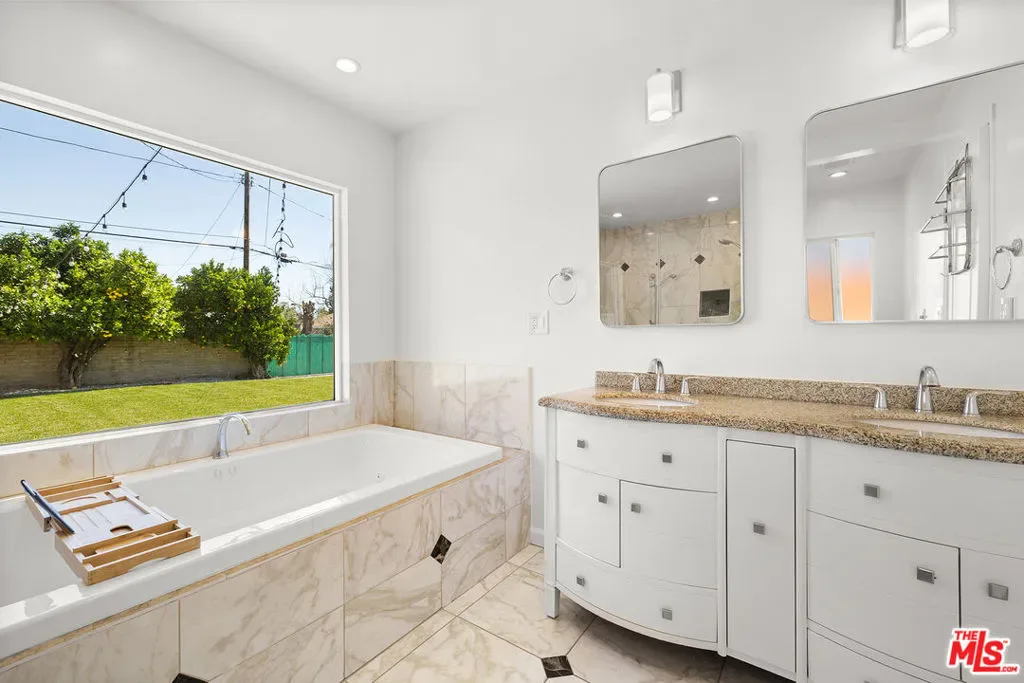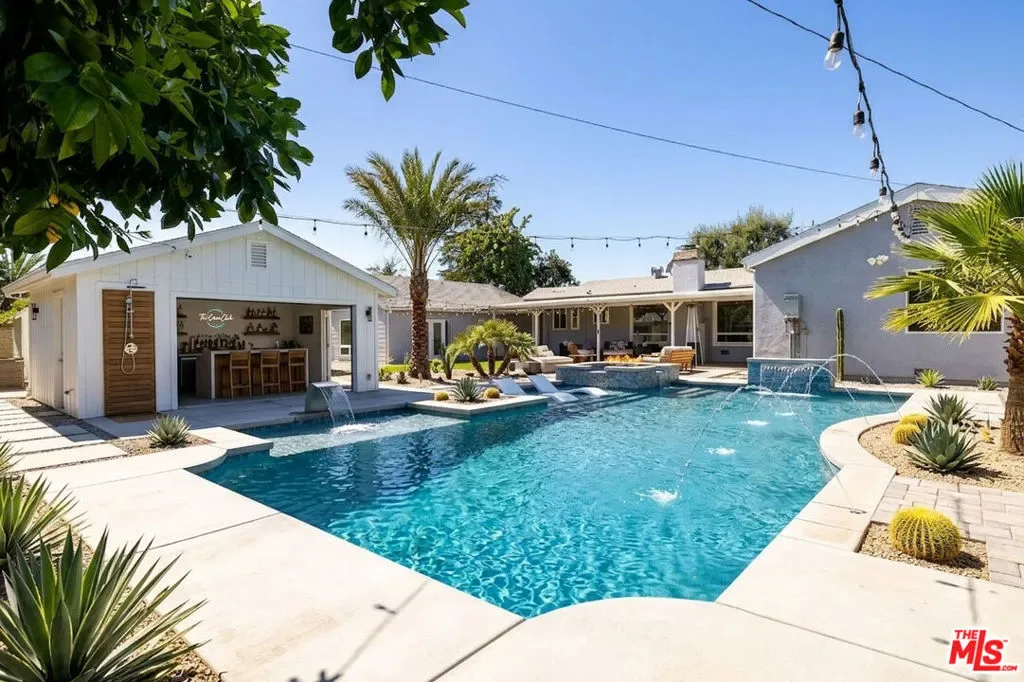 Presenting an exceptional opportunity in the heart of North Hollywood, this luminous three-bedroom, two-bath residence with a detached designer studio rests on an expansive 12,546 sq ft double lot with coveted RV and alley access. Offering remarkable scale and flexibility, the grounds invite endless possibilities. Build an ADU, design a resort-style pool and outdoor kitchen, cultivate a garden retreat, or create a private compound tailored to your vision. Thoughtfully remodeled and just repainted, the home was enhanced by the addition of a stunning primary suite that elevates everyday living. The refined ranch-inspired layout blends warmth and sophistication throughout. The chef’s kitchen features premium stainless steel appliances and an impressive wall of additional counters, cabinetry, and pantry storage ideal for both elevated entertaining and effortless daily function. The serene primary retreat offers direct access to the rear porch and a spa-inspired bath complete with a deep jetted soaking tub, oversized glass-enclosed shower, and a dramatic picture window that fills the space with natural light. A generous walk-in closet completes this tranquil sanctuary. The finished detached studio is a striking, light-filled space with soaring ceilings, a wall of windows, French door entry, and its own climate system perfect as a luxury home office, art studio, or guest retreat. One of the additional backyard structures has been upgraded to include a private personal gym with A/C, creating a rare at-home wellness experience. Exterior enhancements further elevate the property, including like-new fencing, recent improvements to the backyard structures, a professionally upgraded irrigation system, curated landscape design, and a newer HVAC system for optimal year-round comfort and efficiency. Just moments from the NoHo Arts District with trendy restaurants and cafes, NoHo West, and the North Hollywood Metro Station, this remarkable property offers the ideal balance of tranquility and connectivity. Also, one of the top High Schools in the state, Science Academy STEM Magnet, is less than a mile away! A rare offering combining space, style, and future potential – an inspired canvas ready to become your private estate.