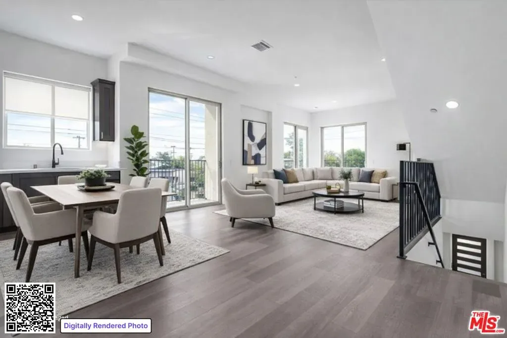 Spacious three story townhouse in the North Hollywood area offering 4 bedrooms and 2.5 bathrooms with an open concept layout and abundant natural light. The home features multiple private balconies, central A/C, in unit laundry, en suite bathrooms, a modern kitchen with stainless steel appliances, ample storage, city and mountain views, and a private two car attached garage. Tenant pays all utilities. Pets allowed subject to owner approval. Conveniently located near NoHo Arts District, shopping, dining, and major transportation routes. Square footage is approximate and not verified.