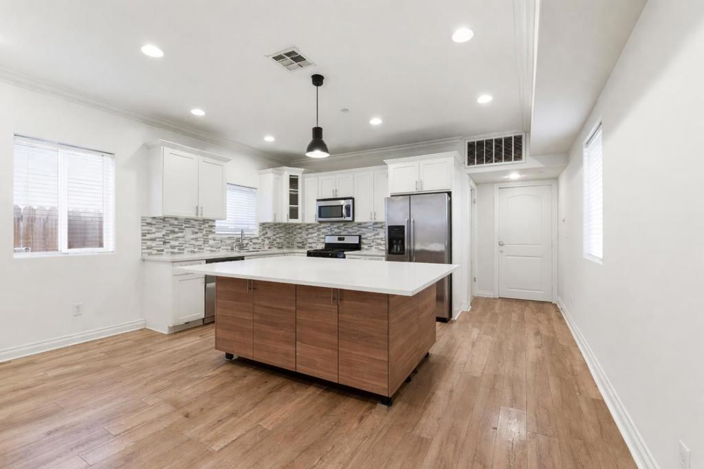 Recently constructed and thoughtfully appointed, this 4-bedroom, 4-bath, 2 story home in North Hollywood reflects the advantages of modern design and updated systems. Its relatively new build offers a refined setting with the assurance that comes from contemporary construction. The main living area unfolds with a sense of openness, enhanced by wide-plank flooring and recessed lighting. The kitchen is elegantly composed around a substantial center island, complemented by generous cabinetry, stainless steel appliances, and a window above the sink. In-home laundry is discreetly integrated, adding practical convenience to the homes daily rhythm. Four well-proportioned bedrooms provide comfortable separation and flexibility. Two bedrooms enjoy direct access to a balcony, extending the interior footprint outward. Four full baths accommodate a variety of living arrangements with ease. Up to 5 pets are permitted. Situated in North Hollywood, the location places you near NoHo Wests retail and dining options, Valley Plaza Parks green space, and the established corridor along Lankershim Boulevard. Ralphs and Trader Joes are close at hand for everyday provisions, while access to the 170 and 101 freeways supports efficient travel throughout Los Angeles.