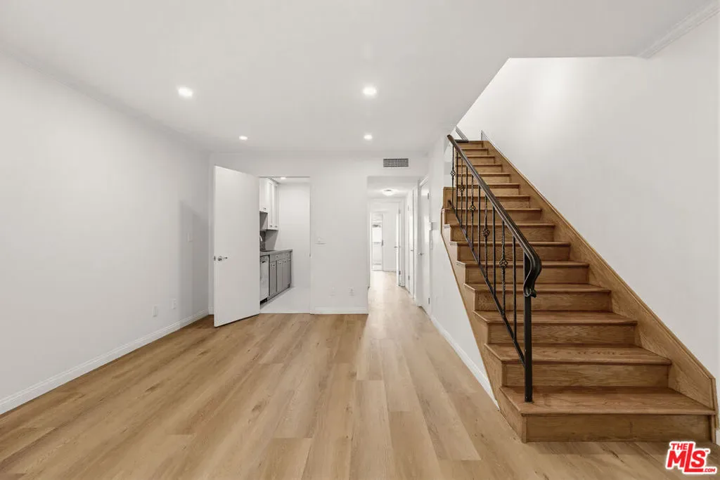 Updated 3 bed and 3 bath townhouse in the heart of Valley Glen. Hardwood floors throughout, large private patio. Kitchen with stainless steel appliances and quartz counter top. One bedroom downstairs with its own bathroom, 2 bedrooms and bathrooms upstairs. Balcony in the master bedroom on the second floor. All bathrooms with porcelain tiles and modern vanities. Unit comes with refrigerator and washer. The unit includes one dedicated carport parking space, with the option to purchase a second parking space from the HOA for just $1,430 per year to be verified by the HOA. Community offers the resort-like complex with 3 pools, spa and play ground. Close to shops, supermarkets, restaurants, bus stops, the Metro Orange Line and LA Fitness. MUST SEE THIS UNIT! Photos are virtually staged.