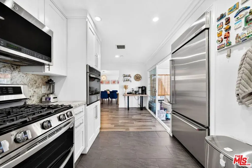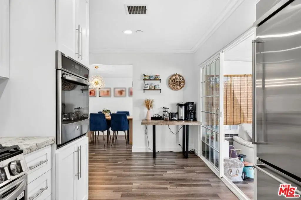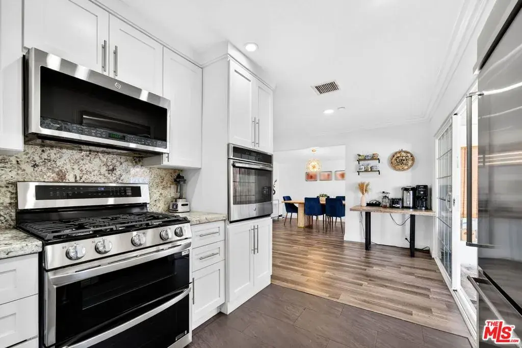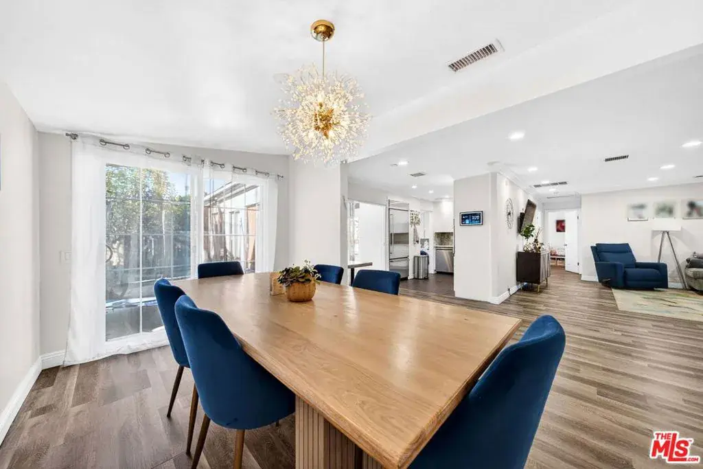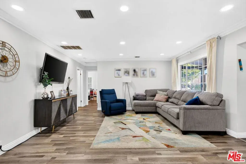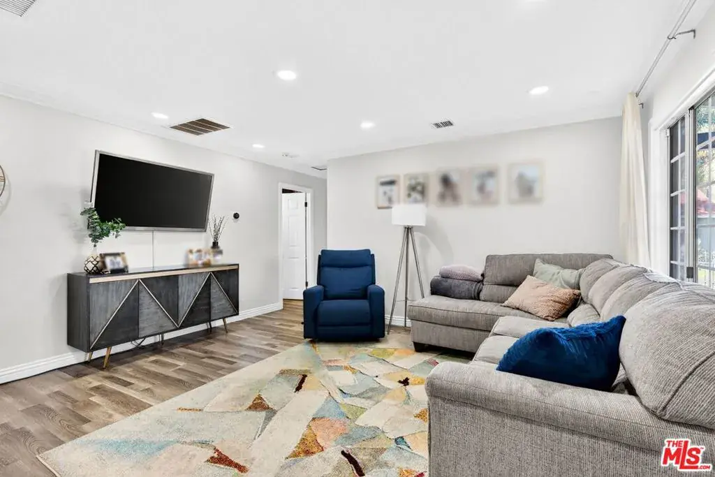 This inviting and spacious 4-bedroom, 3-bathroom home offers a thoughtful layout in a desirable pocket of Valley Glen. The home features dual primary bedrooms, with one located upstairs on its own private level and one downstairs, providing flexibility for a variety of living arrangements. The upstairs primary includes an attached half-bedroom that was previously a walk-in closet and can easily be used as a home office or converted back to a closet. Two additional bedrooms offer ample space for family, guests, or work-from-home needs. A bright sunroom adds even more living space, perfect for a playroom, reading nook, gym, or bonus room. The kitchen has been renovated with custom cabinetry, granite countertops, and stainless steel appliances. Outside, the backyard offers space to relax and unwind with mature fruit trees and a hot tub. The front yard and driveway are secured by an electric gate, and the home is equipped with an EV charger and solar panels. Additional smart-home features include a Ring camera system and Ring doorbell that will remain for the next tenant to enjoy, along with smart light switches throughout the home that can be controlled via Google or Alexa. Conveniently located near Monlux Elementary, Grant High School, Valley College, houses of worship, shopping (NOHO West and Sportsmen’s lodge), and with easy access to the 101 and 170 freeways, this home combines a flexible floor plan with modern upgrades and everyday convenience.