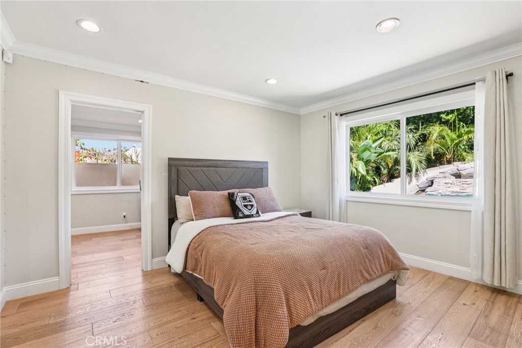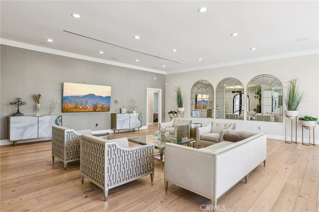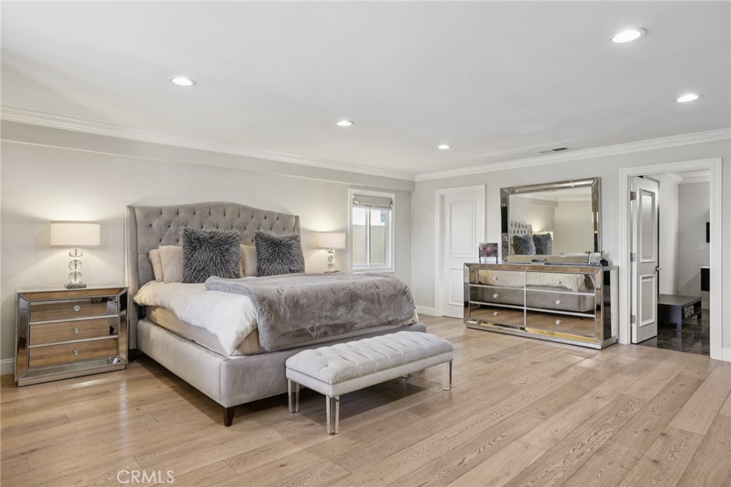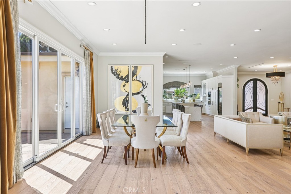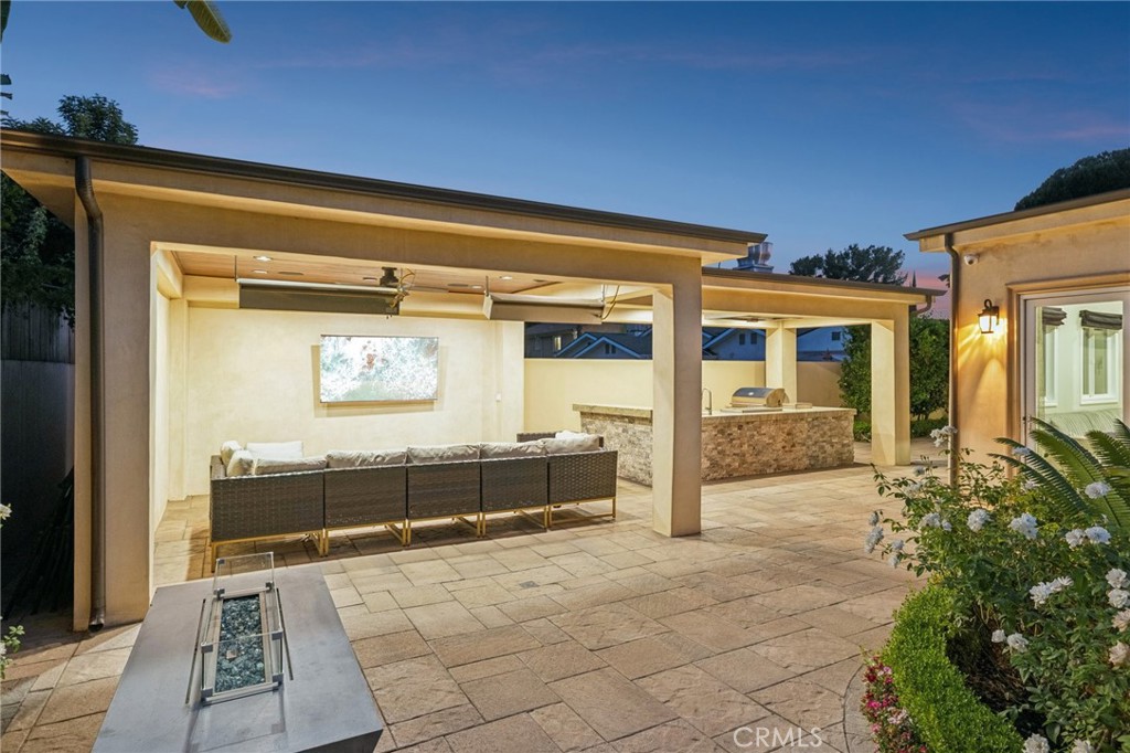 Welcome to 6850 Longridge Ave, a tastefully reimagined Mediterranean style villa featuring 3,450 sqft of living space designed with a light-filled, open floor plan ideal for large gatherings situated on an expansive 11,600 sqft lot! Upon entry you are greeted with an abundance of natural light, high ceilings, recessed lighting, and rich hardwood flooring seamlessly connecting the living room, kitchen, and family rooms. The chef s kitchen boasts an extended center island w/ additional seating, high-end stainless appliances, wine cooler, and plenty of cabinetry. The spacious primary bedroom features a spa-like en-suite bath and roomy walk-in closet with custom built-ins. A secondary bedroom also features an en-suite bath and the third bedroom is paired with a private bonus room. Both the interior & exterior of the home are wired with a high-end audio system catering to audiophiles for the ultimate listening experience. For those who love spending time outdoors, a resort-style backyard paradise awaits. Surrounded by palm trees, the covered patio & BBQ area overlooking the glistening pool, spa & firepit makes this an ideal, private setting for gatherings day or night. Additional highlights include a spacious garage w/ ample storage space to accommodate any buyers needs while the circular driveway can support parking for large families. Don’t miss this one-of-a-kind home blending sophistication, comfort, and unforgettable entertaining spaces.