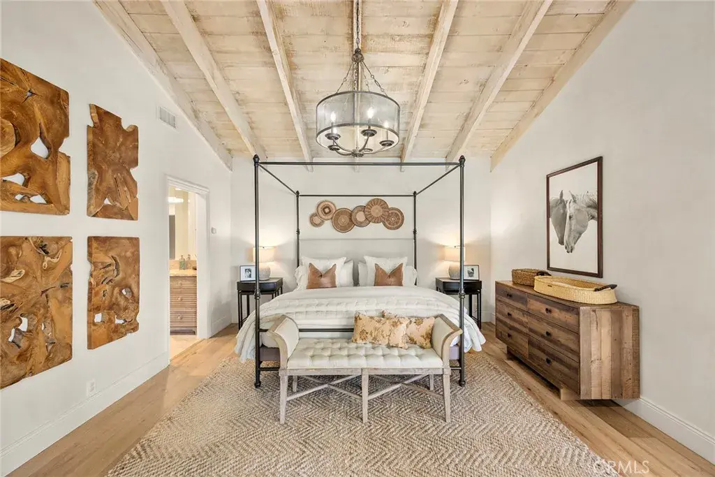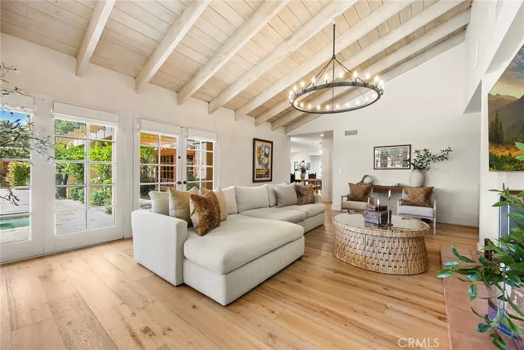 Step inside and experience the kind of space and design that buyers relentlessly search for yet seldom find. Soaring vaulted and beamed ceilings define the living spaces, creating volume, character, and effortless flow. Natural light pours through expansive windows, illuminating rich finishes and refined details at every turn. The open-concept great room blends seamlessly with an elevated dining area and a showpiece chef’s kitchen—complete with a large island, premium appliances, stone countertops, and custom soft-close cabinetry. This home is built for entertaining, celebrating, and living beautifully.