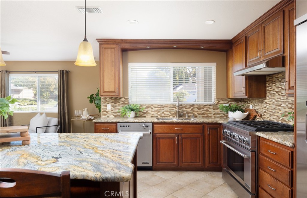 Welcome to 1032 Saint John Place in the highly desirable community of North Tustin. This beautifully maintained single-level John Lyttle designed ranch-style home offers a warm, welcoming layout and thoughtfully updated features throughout. A charming entry leads into a spacious and light-filled interior highlighted by a large open family room and an expansive kitchen designed for both everyday living and entertaining. The kitchen features a center island, granite countertops, abundant cabinetry, and a stainless-steel appliance package, creating a functional hub for gatherings and family meals. The home is currently configured with three bedrooms plus a dedicated office, which can easily function as a fourth bedroom to suit a new owner’s needs. Interior finishes include porcelain tile flooring in the main living areas, carpet in the bedrooms and family room, and wood flooring in the office, all part of a comprehensive remodel completed in 2008. Comfort and efficiency have been thoughtfully maintained with key system upgrades, including a new high-efficiency heat pump, air handler, and all-new ducting installed in 2024. The roof features a CertainTeed Presidential 50-year composition shingle installed in 2007. Step outside to a private backyard retreat designed for relaxation and entertaining. The outdoor space features a large built-in wraparound BBQ with granite countertops and extensive cabinet storage, perfect for hosting gatherings. A covered shaded patio provides a comfortable outdoor living area, while the elegant saltwater pool and spa—remodeled in 2018—feature a Baja shelf and twin spillway waterfalls, creating a true resort-style setting. Additional highlights include double-pane windows through most of the home, a 200-amp upgraded electrical panel, and no HOA. Combining classic ranch-style charm, modern upgrades, and an exceptional North Tustin location, this home offers comfortable California living with spaces designed for both everyday enjoyment and memorable entertaining.
