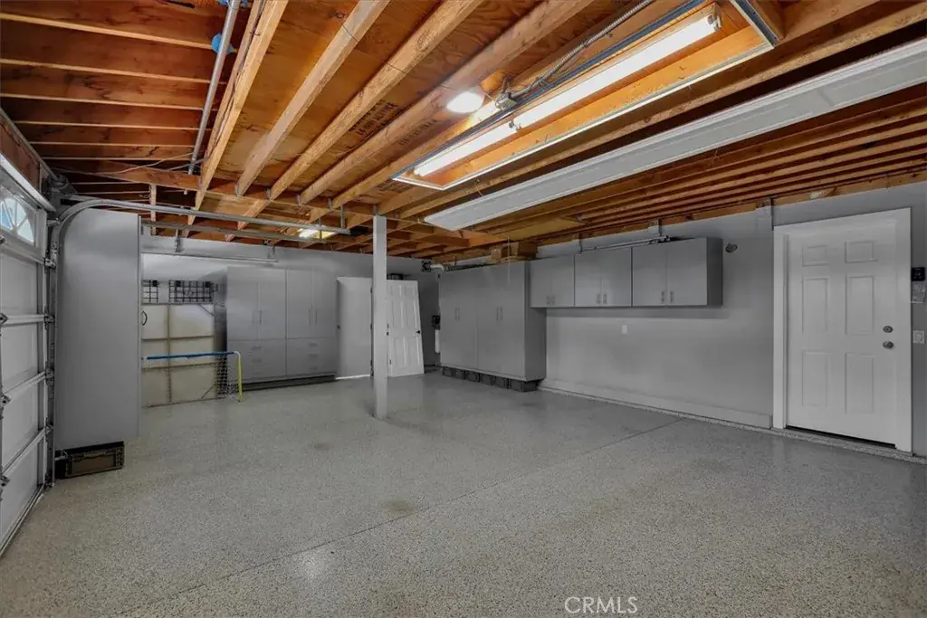 three-car garage with attic storage and pull-down access, ample guest parking, and