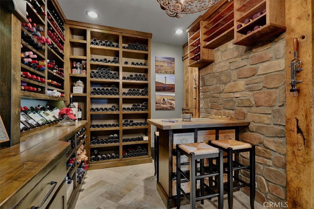 wine cellar accommodates approximately 2,500 bottles, creating a striking focal point for