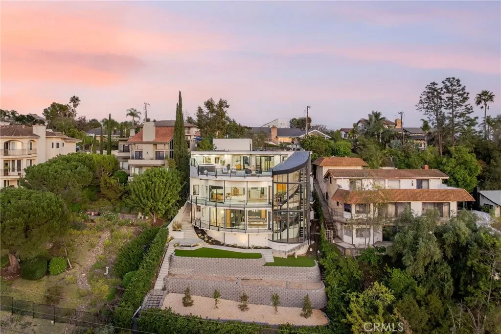 Welcome to “The Halo House” — a one-of-a-kind trophy estate perched in the coveted hills of North Tustin, California, where 180° panoramic views stretch from Catalina Island across the Long Beach Port to the Downtown Los Angeles skyline. Enjoy nightly Disneyland fireworks, best experienced from your private hot tub under the stars.