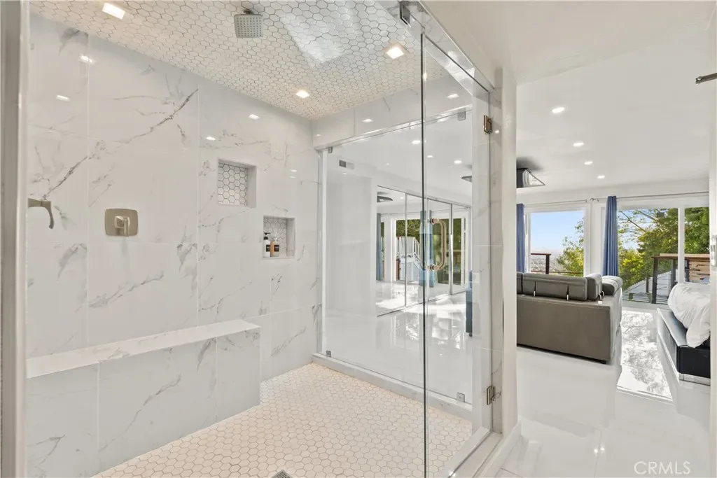 From the moment you enter, you’re greeted with walls of glass and natural light that showcase the views throughout the entire home. Nearly every space — including all bedrooms, the living room, family room, dining area, and kitchen — captures the surrounding scenery.