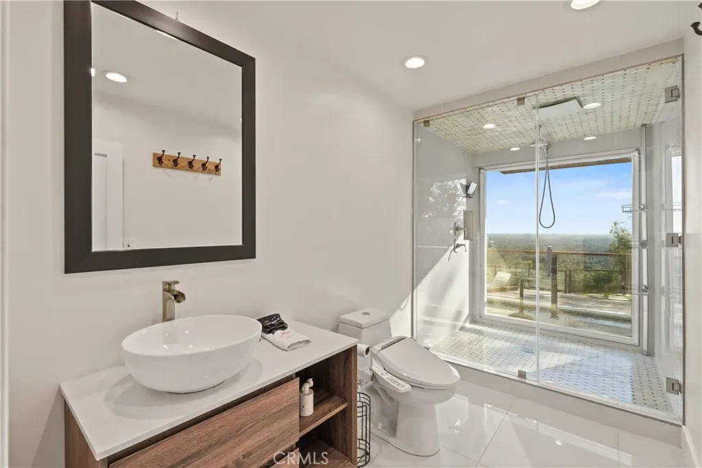The home features two primary suites. The main primary suite offers a wraparound balcony, creating the perfect setting to take in the views from sunrise to sunset — imagine waking up to this every day. It also includes dual walk-in closets, including one oversized closet, along with a spacious shower and soaking tub. The secondary primary suite is equally impressive, featuring a large bedroom and an expansive walk-in shower.