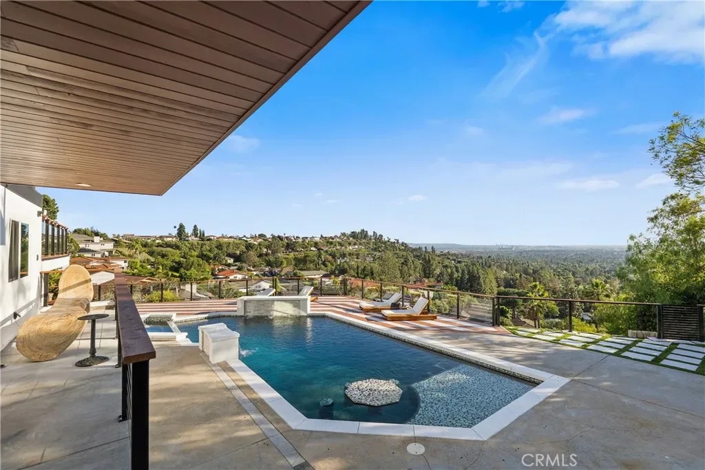 The backyard is designed for entertaining and relaxation, complete with a pool, spa, deck, built-in BBQ, and a large side yard with turf. The setting offers both privacy and functionality, making it perfect for hosting or enjoying quiet evenings with a view.