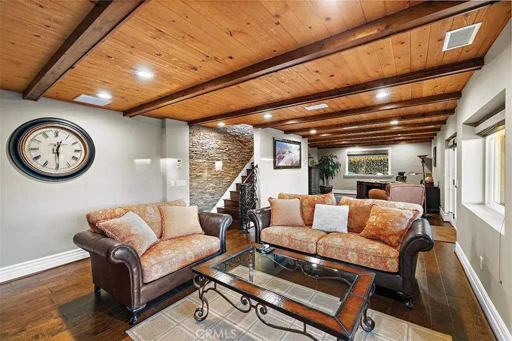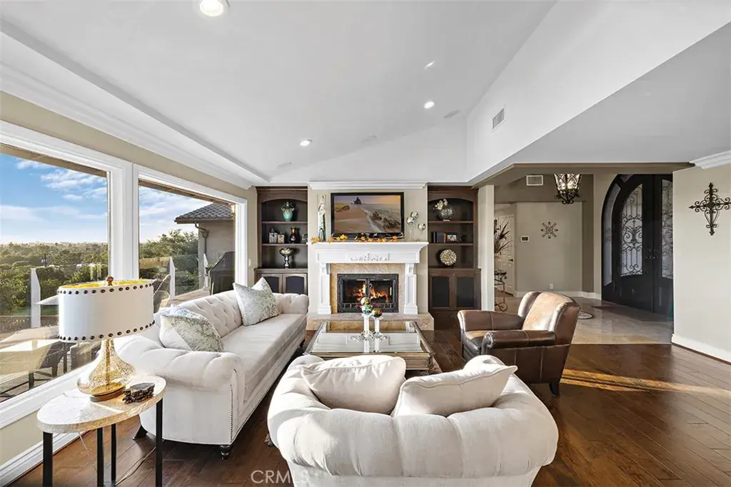 Welcome to an exceptional renovated estate at 1542 La Loma Drive in North Tustin—where luxury living, resort-style amenities, cool breezes, and serious car-collector capability come together in one extraordinary property. This move-in-ready home featuring the privacy of a dead-end street has been reimagined and offers sweeping panoramic vistas, including direct Catalina Island sunset views. Arrive in style with a motor court–style entrance leading to a six-car collector-grade garage environment featuring lift-ready bays, impressive volume, and the privacy to maintain and enjoy your vehicles on your own schedule. Extra Large subterranean attic-like storage area that has been concreted spanning the width of the house. It’s a rare opportunity to elevate both your lifestyle and your collection. Inside, the home spans approximately 4,614 square feet of beautifully finished living space with three bedrooms plus incredible bonus rooms—including a fully equipped gym and projection room. The chef’s kitchen shines with stainless steel appliances, gorgeous granite countertops, and rich cherry wood cabinetry, opening to bright living areas framed by expansive picture windows and a view deck facing west towards the ocean—Disneyland fireworks can even be seen off the patio deck at night. Venture outside to your personal resort featuring a pool, jacuzzi, and stunning wood deck, with plenty of yard space left to play, entertain, and unwind. This property truly has it all—luxury upgrades, entertainer spaces, car-enthusiast amenities, and outdoor living done right.