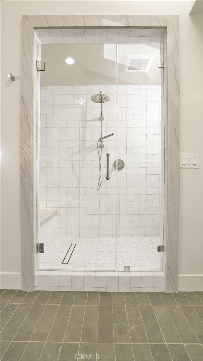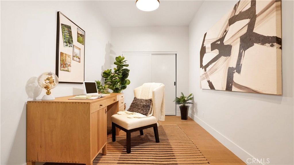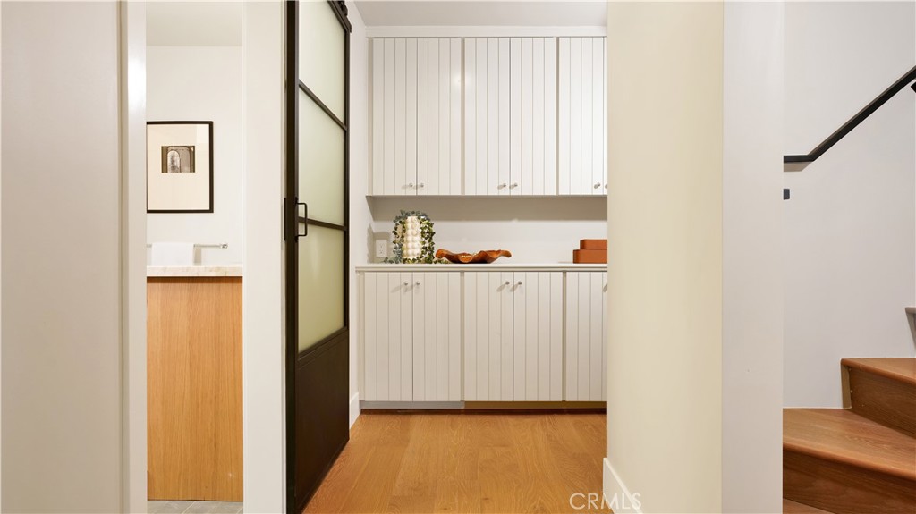 Clean architectural lines and curated finishes define the interior, highlighted by engineered wood flooring, custom cabinetry and closets, quartzite stone surfaces, handcrafted tile work, and premium Viking and Fisher & Paykel appliances.