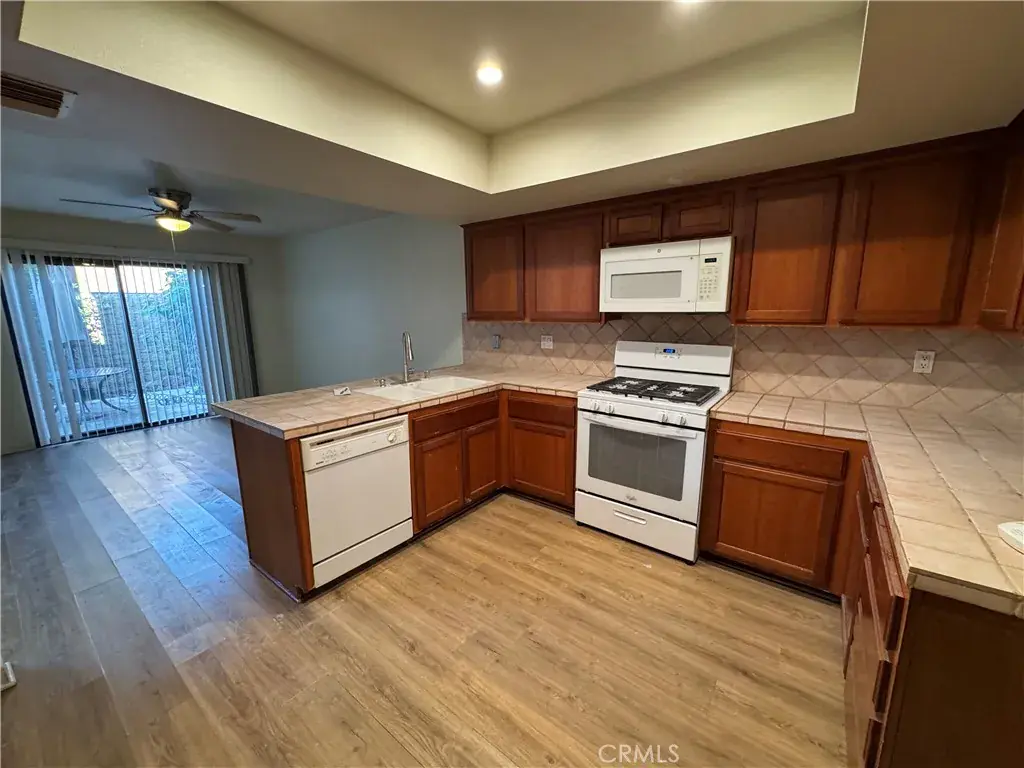 Fabulous Northridge townhome located in a gated community, within walking distance to CSUN, restaurants, grocery stores, Northridge Park, and more. This home features high cathedral ceilings in the spacious living room with a cozy fireplace. The large kitchen is equipped with an oven, range, microwave, dishwasher, refrigerator and includes a breakfast bar that opens to a small family room or breakfast area. The downstairs formal dining room has been converted into a bedroom with a wardrobe, making it ideal as a home office or guest room. Upstairs offers three bedrooms and two full bathrooms. The primary ensuite bedroom includes a large walk-in closet and a generously sized private balcony. The primary bathroom features double sinks and a large shower. Enjoy a private patio accessible from both the living room and family room. 2 car attached garage with Washer and Dryer included. Additional amenities include fresh interior paint and new laminate flooring throughout. The community offers a pool, spa, tennis court and is adjacent to Northridge Park, which features tennis courts, basketball courts, and baseball diamonds. Priced to lease fast — GOOD CREDIT A MUST!! COLLEGE STUDENTS WELCOME!!