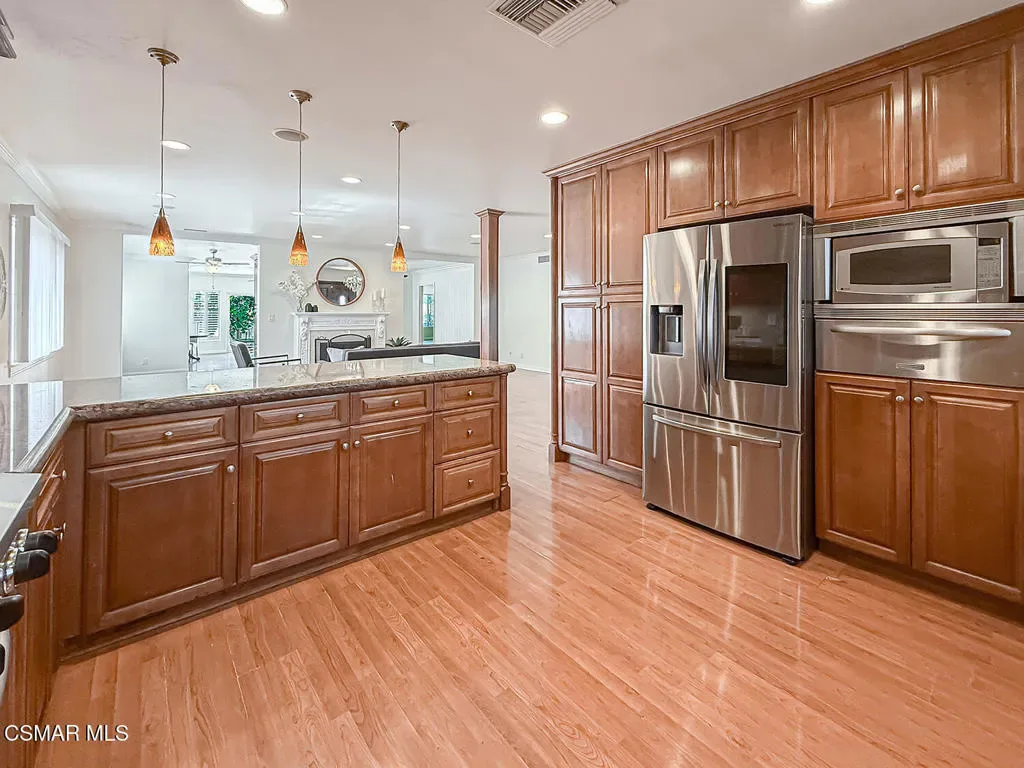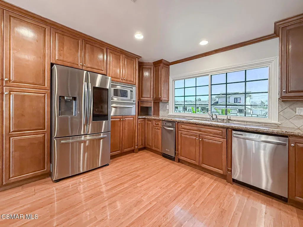 Welcome to the home you’ve been waiting for in the heart of Northridge. Set on an elevated lot above the street, this beautifully remodeled property offers both privacy and standout curb appeal in a quiet neighborhood close to everything.Inside, the home opens to over 3,100 sq. ft. of bright, inviting living space, where the living room, dining area, and family room flow together seamlessly–perfect for everyday living and effortless entertaining. House was thoughtfully designed and carefully executed, creating a home that feels both timeless and comfortable.The chef’s kitchen is truly the heart of the home, featuring granite countertops, custom cabinetry with soft-close drawers and slide-out storage, stainless steel appliances, a wine refrigerator, trash compactor, and a commercial-style 6-burner range with warming drawer–ideal for everything from weeknight dinners to hosting game nights. A separate tankless hot water system, filtered drinking water, and whole-house water softener add everyday convenience.The home offers three spacious bedrooms, each with its own private bath, creating comfort and privacy for everyone. The expansive primary suite is a relaxing retreat with a large walk-in closet and thoughtful upgrades throughout.Step outside and you’ll discover a backyard that feels like your own private garden escape. Lush landscaping surrounds the yard, rose bushes and mature citrus trees–lemon, lime, tangerine, and orange.At the center of it all is the incredible custom spa, designed for gathering and relaxation. Large enough for 12 guests, it features wave functions, jumping water, and beautiful night lighting–perfect for evenings under the stars or movie night!The generous 11,000 sq. ft. lot also offers room to build an ADU or guest house, along with ample parking and space for an RV.With convenient access to the 405 and 118 freeways, shopping, and sought-after schools including Balboa Magnet, Northridge Academy, and Highland Hall Waldorf School, this home offers the perfect blend of comfort, convenience, and lifestyle.Beautifully maintained, thoughtfully upgraded, and ready for its next chapter–this is a home you’ll fall in love with the moment you arrive.