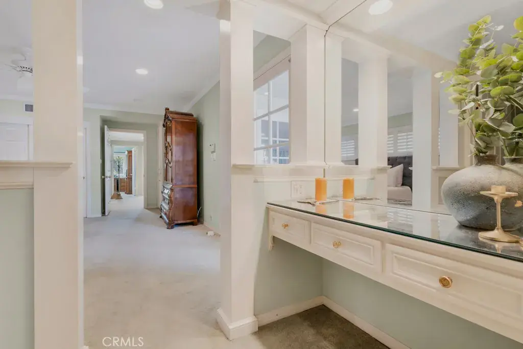 On the other side of teh house are 3 bedrooms, including the primary bedroom and a full hallway bathroom. The primary bedroom has a walk-in closet and access to the backyard, along with a vanity and an exquisite ensuite bathroom.