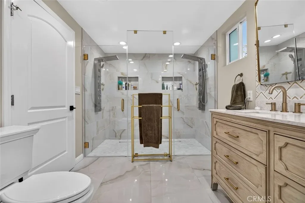 This beautifully remodeled four-bedroom, three-bathroom home is nestled on a quiet cul-de-sac in one of Northridge’s most desirable neighborhoods, where a true sense of community shines as kids gather to play in the evenings. Thoughtfully updated over the past three years, the home features modernized bathrooms and kitchen, along with upgraded plumbing, electrical, roof, and newly installed solar panels for added efficiency. The spacious primary suite offers a luxurious en suite bathroom complete with double sinks, dual showerheads, and a large walk-in closet with custom cabinetry. The kitchen is designed for both function and style, boasting a generous walk-in pantry, while the expansive family room provides the perfect setting for relaxing or entertaining. Step outside to a beautifully designed backyard featuring a covered patio with ceiling fans and pavers—ideal for gatherings or playtime. The remodeled garage adds even more versatility.