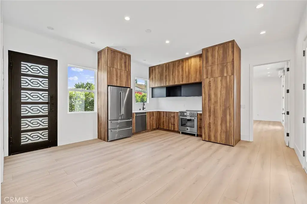 Welcome to this beautifully designed new construction ADU offering contemporary living in the desirable neighborhood of Sherwood Forest. With 2 spacious bedrooms, 3 full bathrooms, and 1,189 square feet of thoughtfully planned living space, this home is perfect for anyone seeking comfort, style, and functionality. As you enter you will find an open-concept layout featuring high ceilings, abundant natural light, and modern beautiful finishes throughout. The gourmet kitchen is equipped with sleek cabinetry, stunning countertops, and stainless steel appliances, seamlessly flowing into the inviting living and dining areas—ideal for entertaining or everyday living. Each bedroom is generously sized, featuring en-suite bathrooms for maximum privacy and convenience. A third full bathroom adds versatility for guests or shared living situations. Additional features include in-unit laundry, private entrance, and dedicated outdoor space—perfect for enjoying the serene surroundings of this established neighborhood.