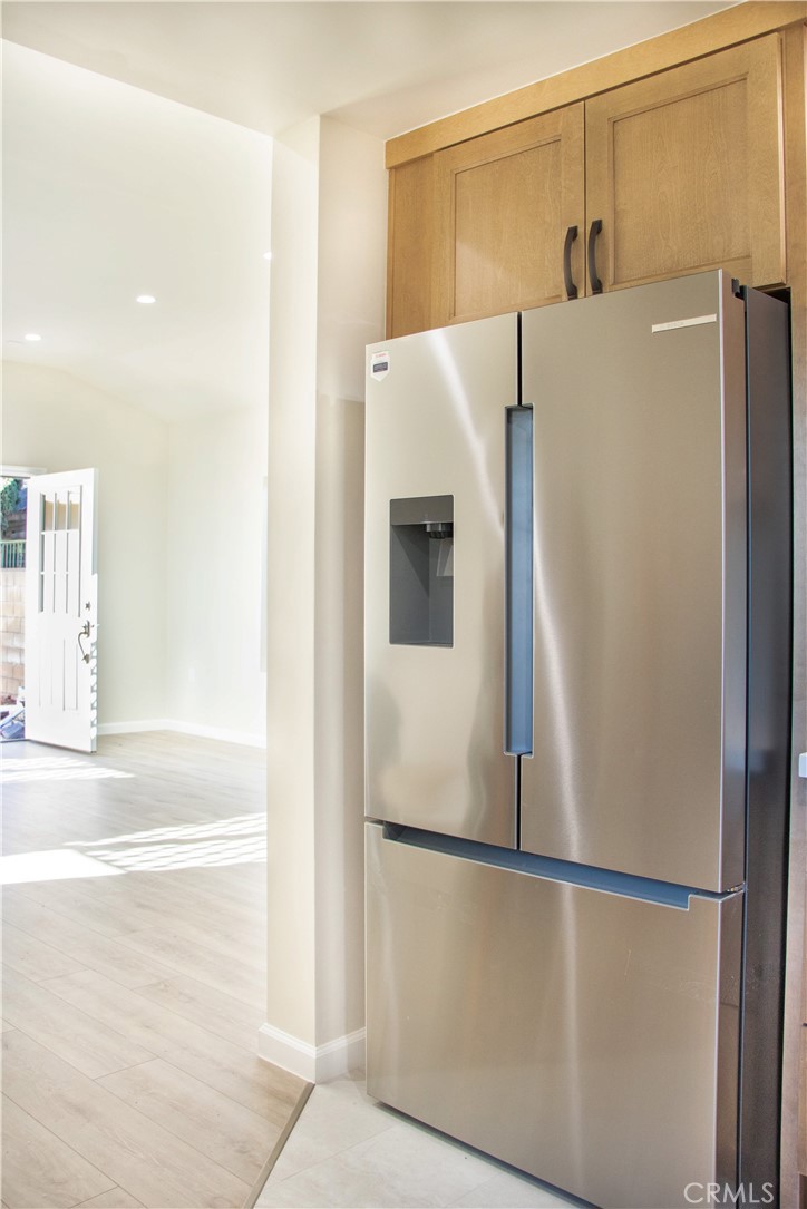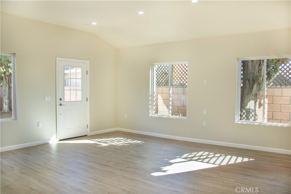 Brand new construction, privately situated rear ADU offering modern design, quality craftsmanship, and exceptional natural light throughout. This thoughtfully designed home features an open-concept layout with high ceilings, recessed lighting, wide-plank flooring, and large windows that create a bright and inviting atmosphere. The contemporary kitchen is equipped with stainless steel appliances, quartz countertops, shaker-style cabinetry, and ample storage, while the spacious bedroom provides generous closet space and easy access to a beautifully finished bathroom with a sleek vanity and designer tile shower. Additional highlights include a brand new HVAC system, energy-efficient windows, updated electrical and plumbing, and quality finishes throughout. A turnkey, move-in-ready space delivering privacy, comfort, and modern living in a quiet rear setting.