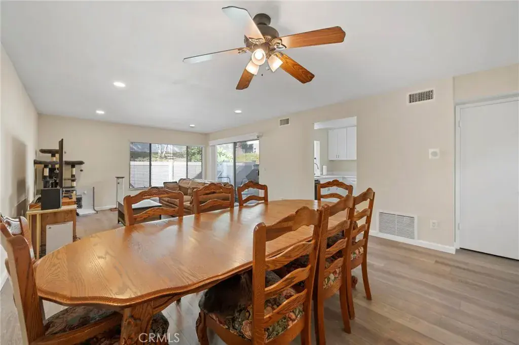 Prized end-unit in Northridge with only one shared wall and the largest patio in the complex, this beautifully updated home offers privacy, space, and style. The interior features luxury vinyl flooring, fresh paint, new base molding, and recessed lighting in the living room and kitchen. The remodeled kitchen showcases new soft-close cabinetry and white quartz countertops, and all three bathrooms have been tastefully renovated with cohesive finishes. Bedrooms include new carpet, a newer A/C unit provides year-round comfort, and convenient in-unit laundry adds everyday ease. All appliances are included — refrigerator, stove, microwave, dishwasher, washer, and dryer — making this home truly move-in ready. With two parking spaces and close proximity to excellent schools, dining, and amenities, this is a standout opportunity in Northridge.
