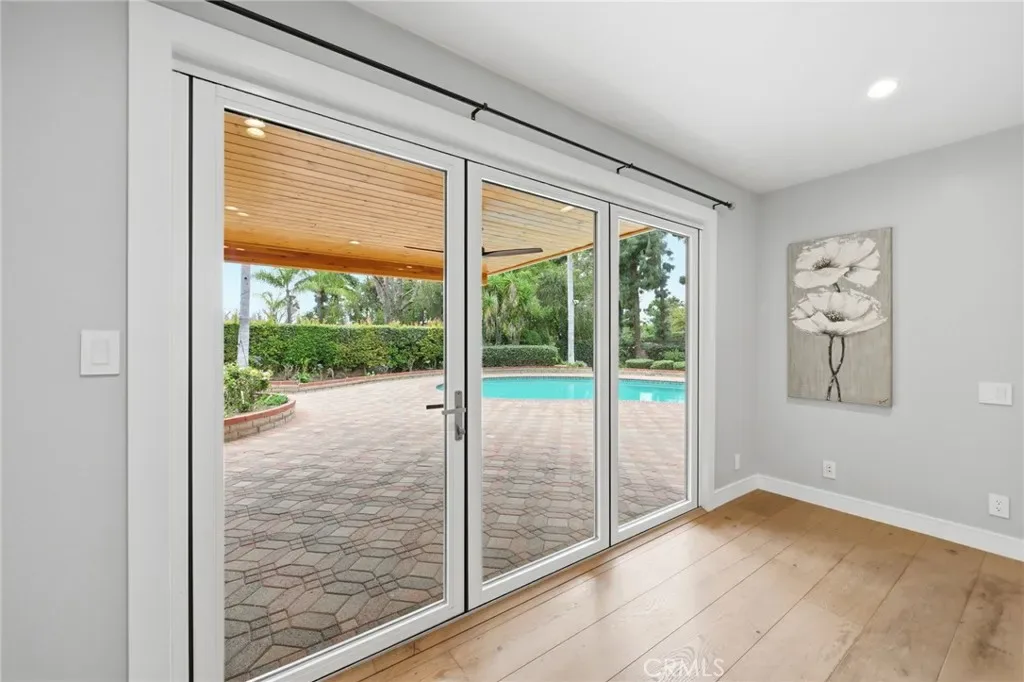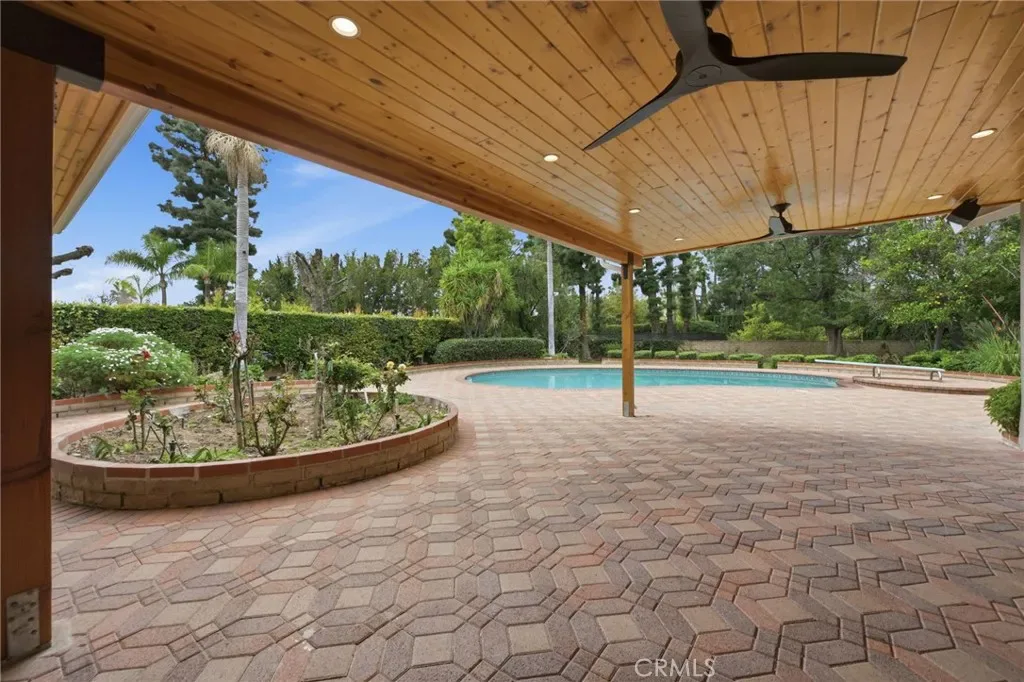 Meticulously remodeled home in prestigious Devonshire Country Estates, Northridge. Welcoming curb appeal leads into this smart energy efficient home with modern conveniences. Perfectly nestled on private cul-de- sac, only four homes in area, with an approximation of 20,000 square foot lot. This upscale newly remodeled property displays an open floor plan with a pool and an expansive yard for outdoor living. Remodeled with fine custom finishes abound this approximate 2600 sq. foot, 3 bed/3-1/2 bath masterpiece has engineered hardwood floors throughout. Each generous size bedroom includes custom built shelving/closets and the living area has customized entertainment system. Through the new installed accordion style patio doors, you can Lounge in the sun drenched private pool and enjoy a nice brunch at the custom made patio with remote controlled fans and is also prewired for an entertainment system. While outside enjoy the expansive manicured yard and loads of fruit trees. This smart home has state of the art recessed lighting, energy efficient quiet cool fan and fully paid solar panels. It makes a perfect home! Easy to show, come and discover more features!