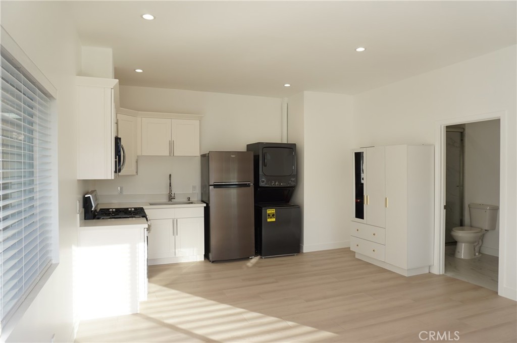 Studio ADU in the heart of Northridge! 400 sq. ft. of living space with an open floor plan featuring laminate floor, recessed lights throughout, mini-split AC/heater unit, and a tankless water heater. The kitchen includes white cabinets, quartz countertops, and brand-new appliances, including a gas stove, microwave, refrigerator, washer, and dryer. The bathroom is beautifully designed with tiled floors and a shower with a glass door. This ADU is situated at the front of the property with a spacious, fenced, private front yard with very low maintenance. Conveniently located near CSUN, shopping centers, Target, and major freeways, this ADU offers easy access to everything Northridge has to offer. Sorry, no pets. A must-see!