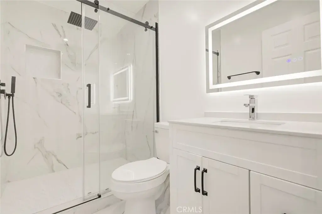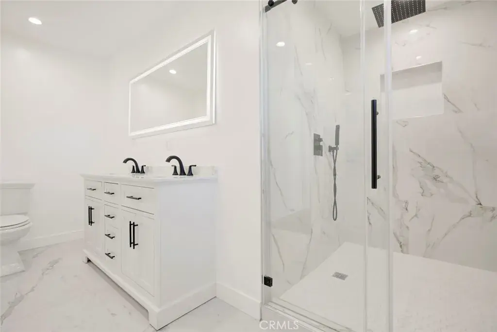 Beautifully remodeled home with PAID OFF SOLAR (9055 Forbes) with a newly built ADU, completed in 2025, offering a combined 2,700 sq ft of living space. The main residence spans approximately 2,000 sq/ft and features 5 spacious bedrooms and 2.5 bathrooms. Highlights include a brand-new breath taking kitchen with sleek countertops, recessed lighting, laminate flooring throughout, updated bathrooms, a remote-controlled fireplace, dual-pane windows, tankless water heater, new roof, and a new HVAC system.
