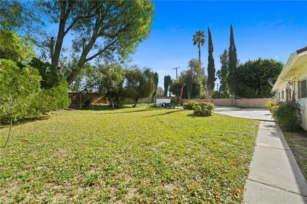 Welcome to this beautifully maintained 4-bedroom, 2.5-bathroom home, ideally located in a quiet and highly desirable neighborhood. Property in this area is a RARE find! Set on an expansive over 16,000 sq ft FLAT LOT, this rare single-story residence offers an exceptional blend of comfort, space, and future opportunity. The property boasts excellent street frontage, enhancing curb appeal and providing added privacy and flexibility for future use. Inside, you’ll find a bright and open floor plan designed for both everyday living and entertaining. The large kitchen serves as the heart of the home, flowing seamlessly into spacious living and dining areas filled with natural light. Additional highlights include a convenient indoor laundry room and a two-car attached garage. Major system upgrades add peace of mind, including updated copper plumbing throughout and an HVAC system that is only a few years old. Step outside to discover the true standout feature, an oversized backyard that is both functional and full of potential. Complete with a generous pool, newly updated pool equipment, and ample patio space, the yard offers plenty of room for entertaining, relaxing, or creating your own private outdoor retreat. The lot size and layout present a rare opportunity to add up to two ADUs (buyer to verify with city), making this property ideal for multi-generational living, rental income, or future expansion. The property also features RV parking and abundant off-street parking, a valuable and hard-to-find amenity. With its expansive lot, strong frontage, and development potential, this home offers a unique combination of lifestyle and long-term value. Whether you’re enjoying poolside gatherings, envisioning additional living spaces, or simply appreciating the peace of a one-level home in a fantastic neighborhood, this property truly offers endless possibilities.