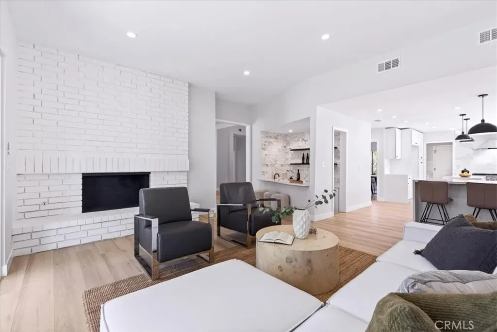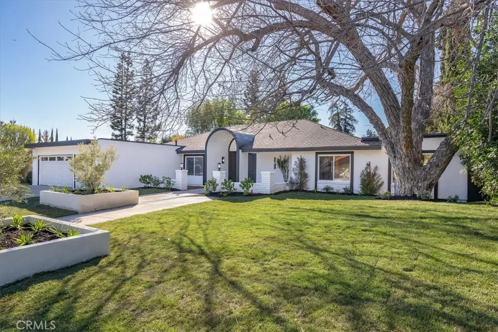 This might be your dream home. 9847 Bothwell Road in the sought-after Devonshire Highlands neighborhood of Northridge offers an unexpected retreat in one of the most desirable areas of the northern San Fernando Valley. Custom finishes and designer accents bring a subtle modern aesthetic home. Large sliding doors open to the backyard, with a very spacious pool sized lot is ready for your imagination and personal style. The result is seamless indoor outdoor living that defines the Southern California lifestyle. Inside, this single-story Northridge luxury home unfolds into multiple living areas, including two family or den spaces separated by an impressive double-sided fireplace. The open floor plan offers flexibility for dining, a home office, or creative production. The kitchen features new appliances, cabinets counters and backsplash. Throughout the home, you’ll find designer hardware, and thoughtful finishes. The primary suite feels like a private retreat, with a spa-inspired bath and rich natural materials that create a calm, resort-like experience. With four total bedrooms and two and a half custom baths, this is a home unlike any other in the Valley. The property is also fully remodeled — a rare find among San Fernando Valley luxury homes. Set within the Devonshire Highlands tract, known for its spacious lots, mature trees, and wide streets, the neighborhood blends a quiet suburban feel with city convenience. Residents enjoy proximity to Porter Ranch shopping and dining, CSUN’s cultural venues, and easy freeway access to Burbank, Studio City, and West Los Angeles. The area’s reputation for long-term ownership and well-maintained properties makes it one of Northridge’s most desirable communities for buyers seeking space, privacy, and enduring value.