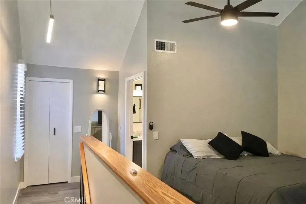 Welcome home to the desirable gated community of Benton Bay in the City of Norwalk. This gorgeous 1-bedroom, 1-bathroom condo is surrounded by beautiful pine trees, bubbling brooks, streams, rocks, ducks, and waterfalls—creating a peaceful mountain-like setting rarely found in Los Angeles County. A true hidden gem, this home has been thoughtfully renovated and meticulously maintained, blending modern upgrades with warmth and character. The bright and spacious interior features brand-new, durable flooring, a beautiful new wooden staircase, fresh paint throughout, updated fixtures and fans, a new smart thermostat (A/C and heating) and a fully renovated kitchen complete with new quartz countertops, cabinetry with ample storage, and a new dishwasher. The open floor plan showcases floor-to-ceiling storefront and clerestory windows, filling the home with natural light. The elevated bedroom loft overlooks the living area and features approximately 10-foot vaulted ceilings, a newer ceiling fan with remote control, and a walk-in closet. The bathroom has been beautifully updated with new tile flooring, a sleek sink, an updated faucet and showerhead, a new mirror, and a custom vanity. Enjoy your morning coffee or evening glass of wine on the private balcony overlooking tranquil ponds and the soothing sounds of flowing water. The unit includes one assigned covered parking space with plenty of guest parking available. Benton Bay offers resort-style amenities, including a pool, spa, gym, dog park, and clubhouse. Conveniently located near major freeways (105, 5, 605, 91), the San Gabriel River Bike Path, dining, shopping centers, Costco, Kaiser, and local schools. If you’re looking for a beautiful home that combines city convenience with the tranquility of nature, this Benton Bay condo is the perfect place to call home.