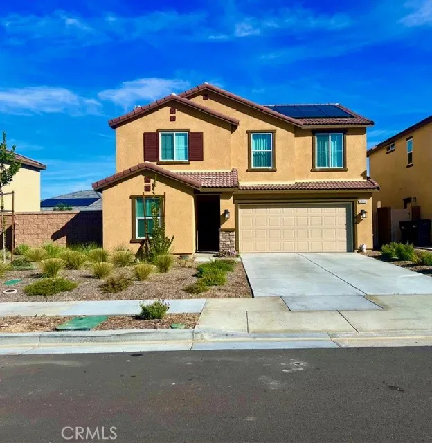 Welcome to the newest community by KB Home in Nuevo, offering affordable, all-electric solar homes designed for efficiency and comfort. This brand-new ENERGY STAR Tuscan-style residence features 1,984 sq ft, 4 bedrooms, and 3 bathrooms, plus nearly $30K in design upgrades. The open great room connects to a modern kitchen with stainless steel appliances, quartz countertops, custom, cabinetry, and a center island. Downstairs includes luxury flooring, a bedroom, and full bath—ideal for guests. Spacious closets throughout and a 10-year limited builder warranty provide added value.