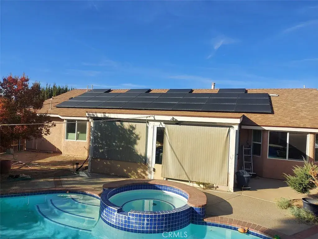 Wonderful home located in the desirable area of Oak Hills. Home has 3 bedrooms and 2 and a half bathrooms, large laundry room with lots of storage and access to the side yard. Home was rebuilt in 2021 due to a fire. Original year built 1988. Effective year built 2021. Almost everything was replaced in 2021 including: windows, doors, plumbing, electrical, drywall, cabinets, flooring, counters, A/C & heating, insulation and roof. Contractor did an excellent job with quality workmanship. Not many homes for sale with an effective year built as recent as this one. Center of the home has high vaulted ceilings, granite counter tops, stove, dishwasher and LVT flooring thru-out for easy maintenance. Beautiful cabinets in the kitchen and throughout the home. Primary bedroom has a large closet and bathroom suite. Upgraded ceiling fans in all rooms. Home has a pool and SPA and tile has been upgraded and a new pump installed for those fun summer days. Attached 2 car garage and a detached 2 car garage, a shed for extra storage. Plenty of room on this 2 Acre parcel to ride your quads. Sliding door which enters into a good size sunroom with access to the backyard. Wood burning stove is surrounded by brick and will be great for those cold desert nights. Solar was installed when the home was rebuilt and solar will be paid off in escrow. Solar is on the Net Energy Metering where you could receive credit from Edison if you system generates excess energy then what you use. Home is completely fenced all the way around the property and around the pool area. Home is on Septic and was serviced about 2-4 years ago.