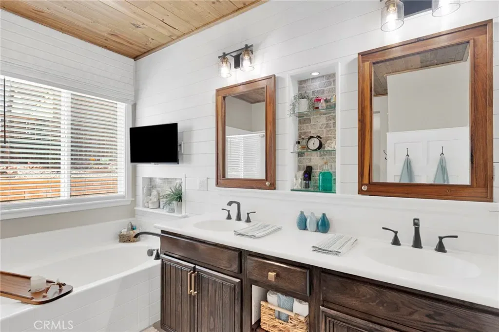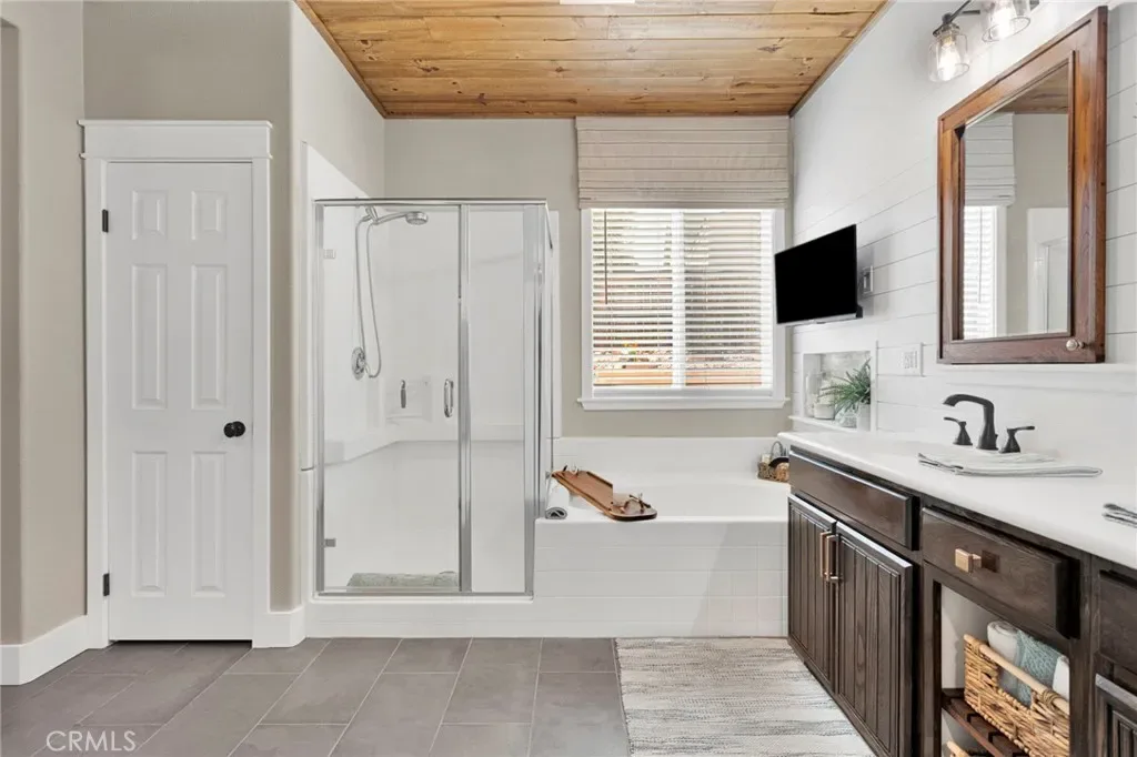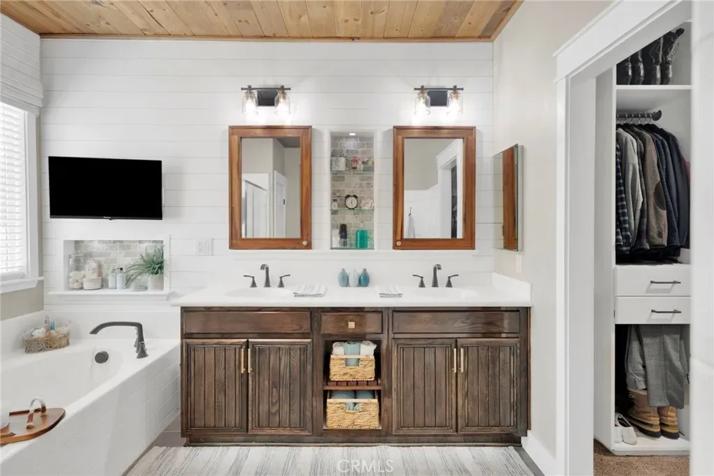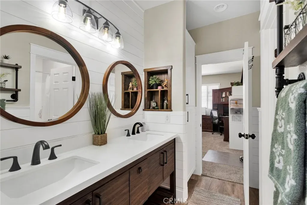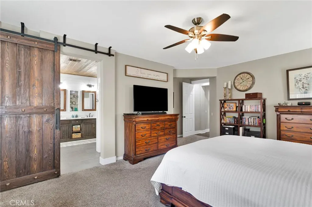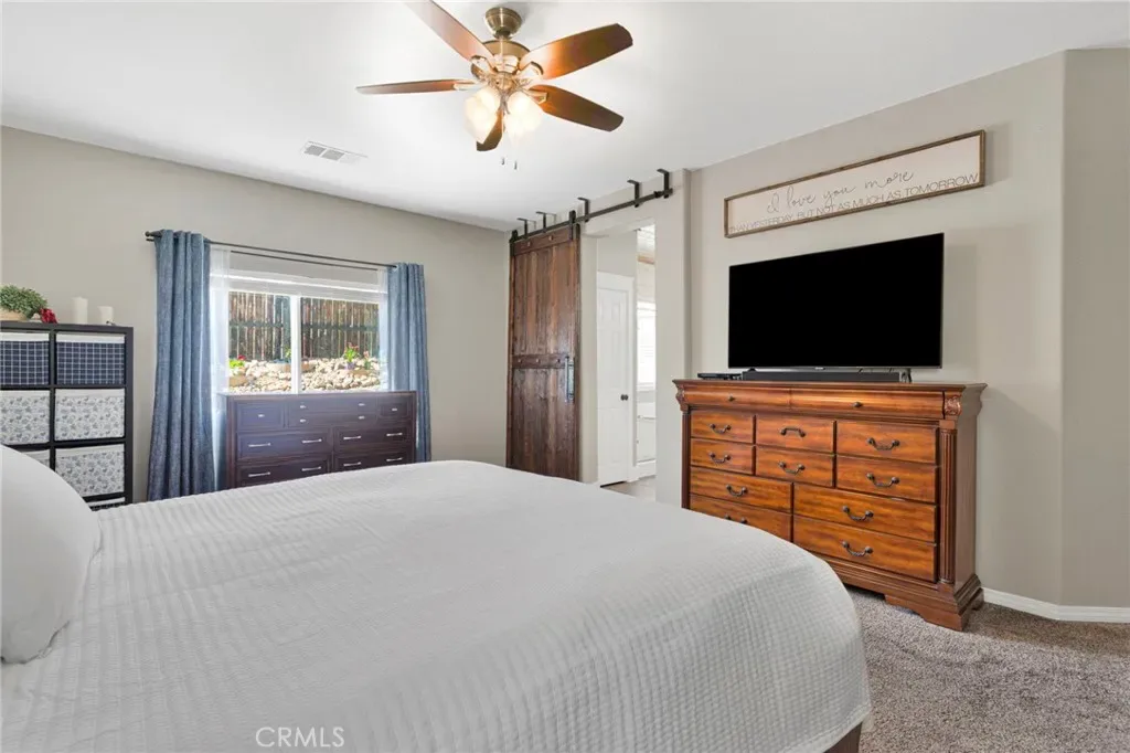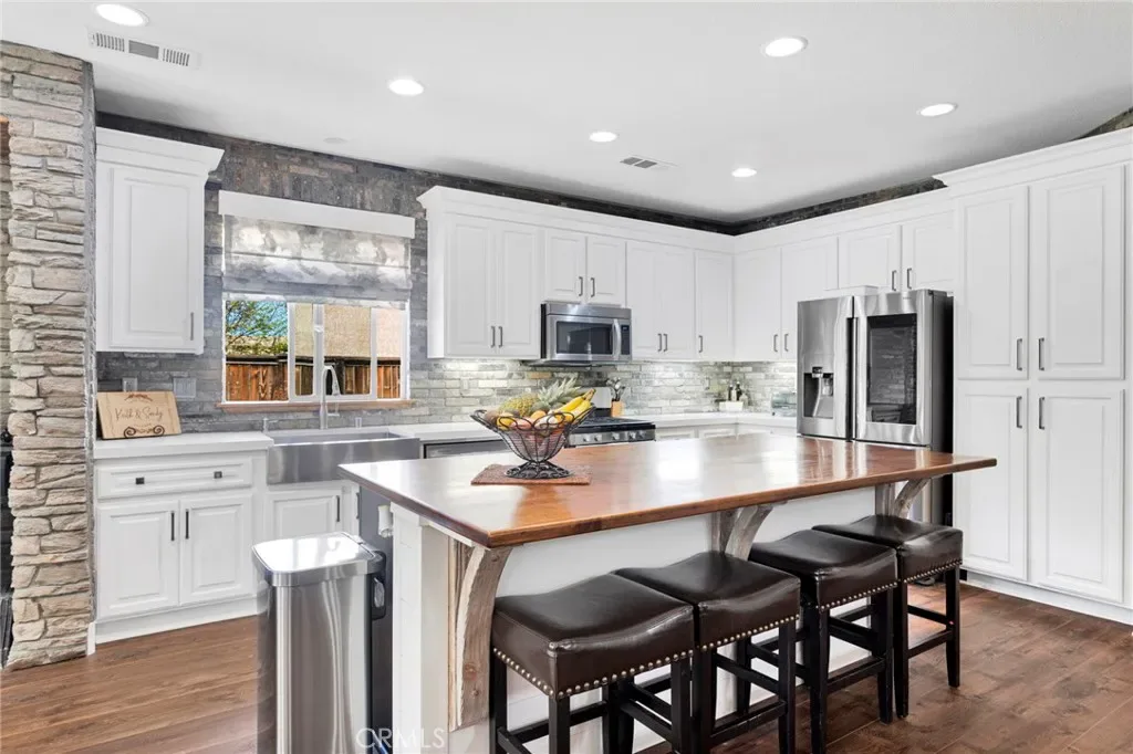 Look no further! This stunning modern farmhouse home in desirable Oak Hills is truly turnkey and fully renovated with attention to detail throughout. Featuring 4 bedrooms and 2 bathrooms, the 4th bedroom functions as a flexible space ideal for a home office, guest room, or den. The upgraded kitchen is a standout, featuring a stainless farmhouse sink, new dishwasher and microwave, 2″ thick Silestone countertops, a handcrafted butcher block island, and a full brick veneer backsplash that adds warmth and character. The family room showcases an architectural stone accent wall with a solid wood mantel, creating a perfect focal point. High-end waterproof vinyl plank flooring runs throughout, offering the look of hardwood with durability. A custom-built Murphy bookcase conceals a hidden space that must be seen to appreciate. Additional upgrades include upgraded carpet and pad, barndoor-style sliding doors, board and batten finishes, herringbone brick flooring in the laundry area, and custom cabinetry throughout. The primary suite offers a spacious walk-in closet with built-ins and an upgraded bathroom featuring custom walnut cabinetry, porcelain tile flooring, ambient lighting, a wall-mounted TV, and a relaxing garden tub. The garage includes a built-in workspace, overhead storage racks, extensive attic storage, and a newer garage door motor. Energy-efficient upgrades include a QuietCool smart attic fan and Ecobee thermostat for year-round comfort. The backyard features a concrete patio, large side yard, and professionally installed rip rap rock with dirt lockers, providing excellent drainage, erosion control, and a clean, low-maintenance design, along with a versatile storage shed. Additional highlights include custom bi-fold plantation shutters on the rear sliding patio door, a spacious indoor laundry area with custom cabinetry, upgraded lighting and fixtures throughout, and thoughtful built-in storage solutions that maximize functionality. The layout offers a comfortable flow for both everyday living and entertaining. The large lot provides ample space with RV parking on the side, not gated, large sideyard with additional outdoor living, or future customization to fit your needs. Situated in a well-established neighborhood with pride of ownership, this home offers both comfort and functionality with thoughtful upgrades throughout. Low taxes. No Mello-Roos. Too many upgrades to list—this is a home you need to see in person to truly appreciate.