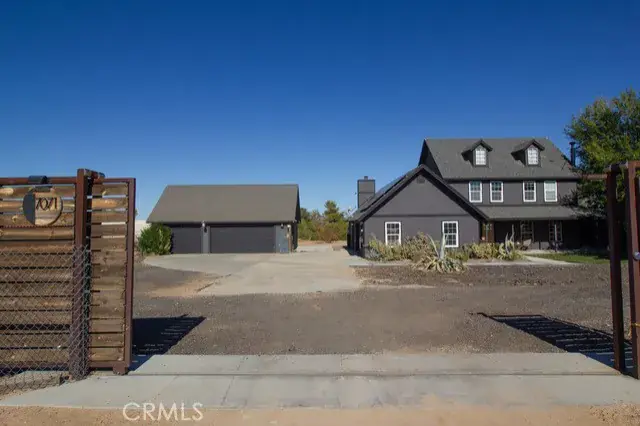 Welcome to this stunning, fully remodeled modern farmhouse that perfectly blends rustic charm with contemporary luxury. Set on just over 2 acres of land, this home offers both elegance and functionality. Step inside to an open-concept floor plan featuring designer finishes, high ceilings, and top-of-the-line appliances throughout. The gourmet kitchen boasts custom cabinetry, a large center island, and premium stainless-steel appliances including a 48 inch professional hood and range—ideal for both entertaining and everyday living. The spacious primary suite offers a serene retreat with spa-like amenities, while additional bedrooms provide comfort and flexibility for family or guests-all located on the second floor. Outside, enjoy the best of country living with a stock tank pool, outdoor fire pit, and ample yard space for recreation or relaxation. The property includes an attached 2-car garage plus a separate 3-car garage, providing abundant storage and workspace. Fitness enthusiasts will love the custom C-container gym, while equestrians can take advantage of the private horse arena that comes complete with a 40 foot container used to store tack and feed. Powered by solar energy and equipped with two Tesla Powerwalls-saving over $6,000 for the year, this home delivers sustainability without sacrificing style. Every detail has been thoughtfully designed, making this chic farmhouse estate the ultimate blend of sophistication, comfort, and modern country living.