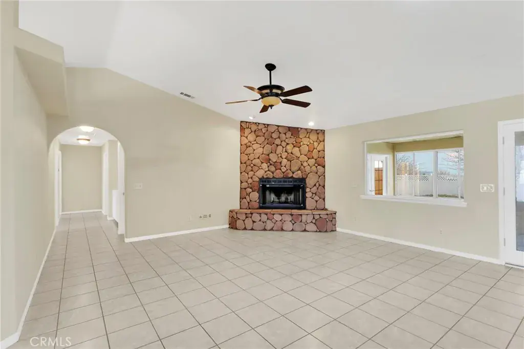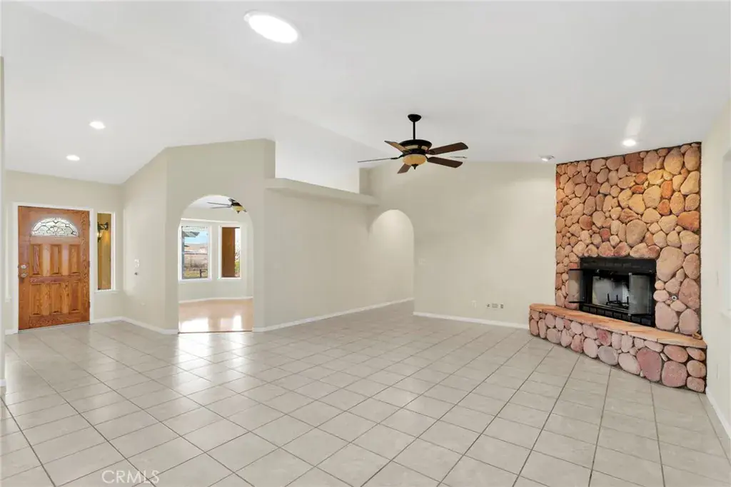 Step inside to an open and airy floor plan featuring a large family room with a cozy rock fireplace, perfect for relaxing or entertaining. The home also offers a formal dining room and a spacious kitchen complete with island seating and ample storage.